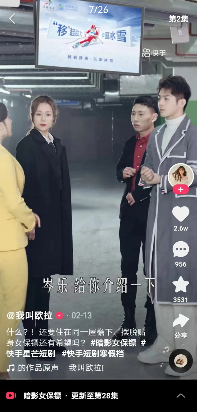 Swisse独家冠名了《我和我们》短剧,并在短剧中深度植入了广告,剧场内有显示产品的电商页面,中国移动也在快手短剧《暗影女保镖》中,给观众灌输了“移起助力中国冰雪”的理念。这也能看出快手开始逐步解锁短剧植入的商业模式,很多品牌也通过短剧方式实现了植入营销。