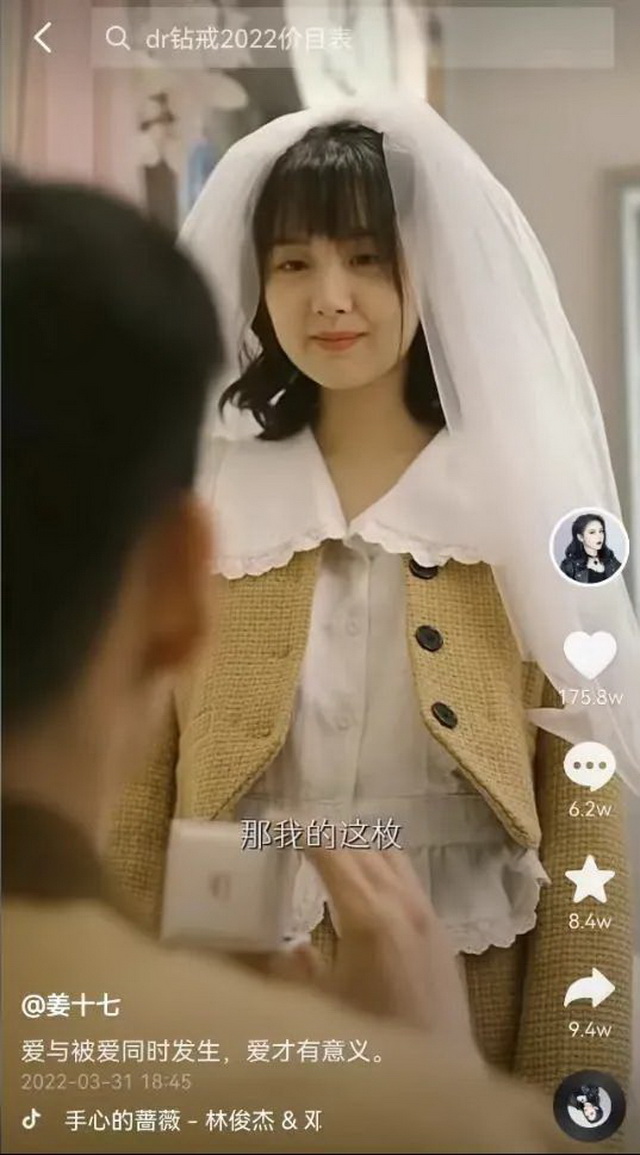 另外,为了不影响短剧正片的观感,她也会利用在短剧番外剧情中植入产品的形式为品牌种草。姜十七在短剧植入带货的KONO洗发水控油去屑产品销量达到了62万,《夜班日记》也在短剧番外中植入了DR钻戒的广告,钻戒广告还给男女主的爱情故事增添了别样的化学反应。