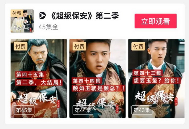目前《超级保安》推出了四季,第一季已下架,只有第二季需要付费解锁,从点赞量来看,免费观看的短剧单集点赞量最高达到了45W,其余集数点赞量在8W左右,付费的五集里,点赞量只有3000-10000,用户的付费意愿显而易见,还有用户在付费观看后吐槽:“你猜我为什么来看抖音?”
