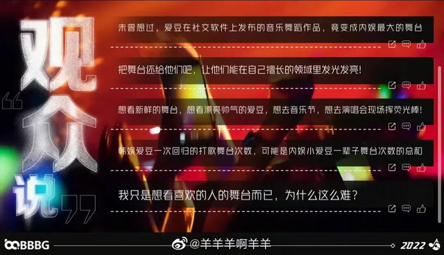 但总有人想要去做,在“选秀”停止的2022年,“舞台”、“打歌舞台”节目却再一次回到大众视线。无关噱头和风口,只关乎于一种市场需求。