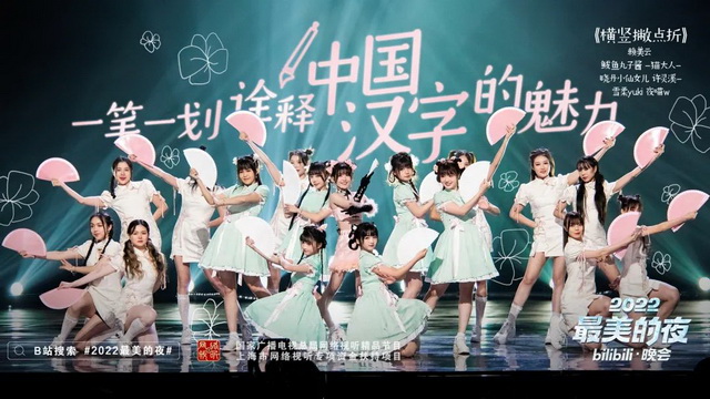 首次主持跨晚的“盗月社”组合,是B站超过700万粉丝的UP主;歌曲《横竖撇点折》和赖美云一起登台的,是B站舞蹈区的UP主们;刘宪华唱的《Sold Out》,是经常出现在B站MAD混剪中的BGM;甚至洛天依表演的《万古生香》,作曲人litterzy也是B站知名的音乐区UP主。