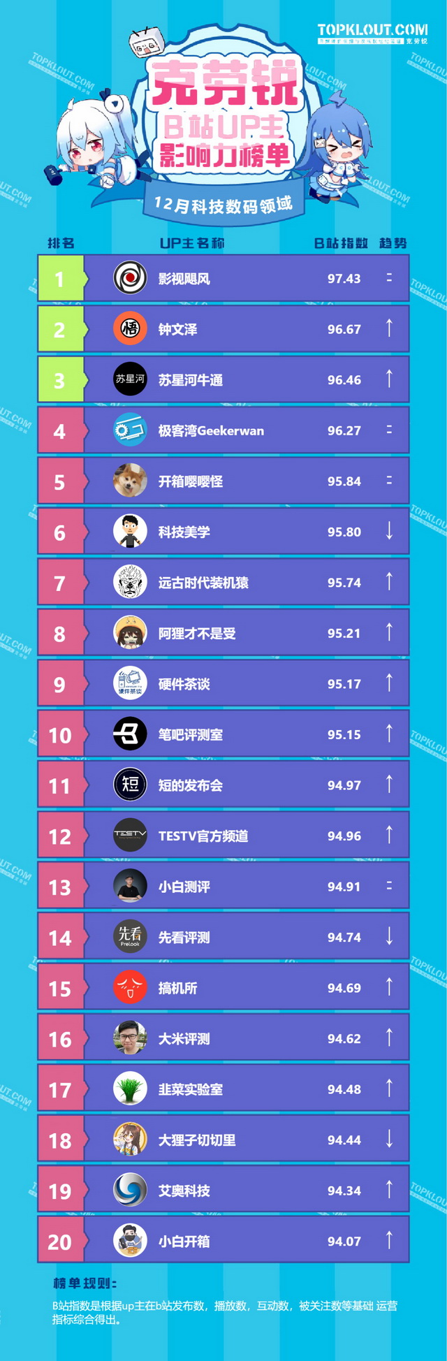 为了让广告主和投资人更充分地了解B站各垂类头部UP主各自的特点以及影响力,克劳锐推出了《B站UP主影响力榜》。