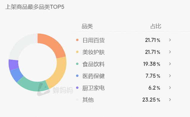 向太在12月19日的六场直播带货SKU数量达到了129个,走的也是全品类路线:洗衣液、抽纸等日用百货和面膜、粉饼等美妆护肤产品最多,其次是各类食品饮料、保健品和小家电。