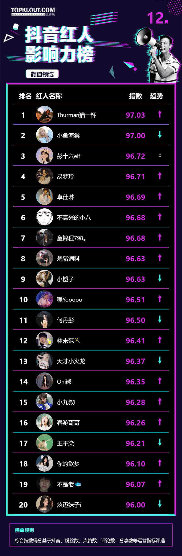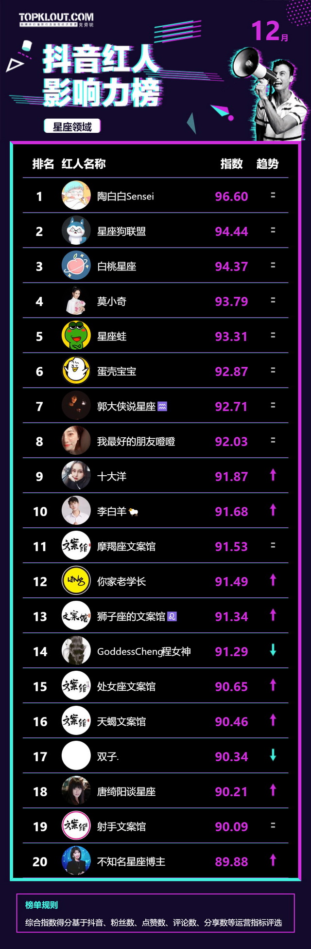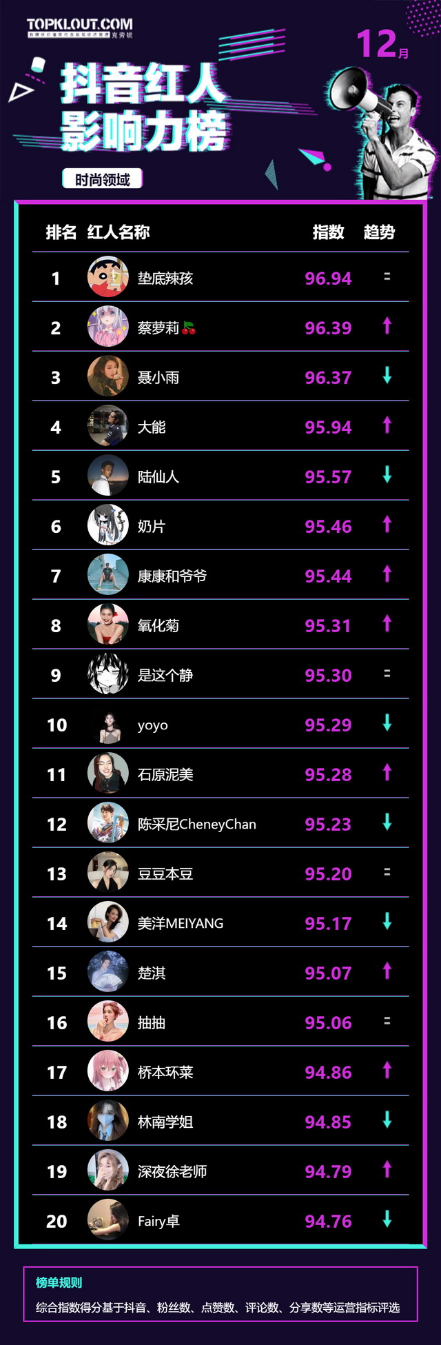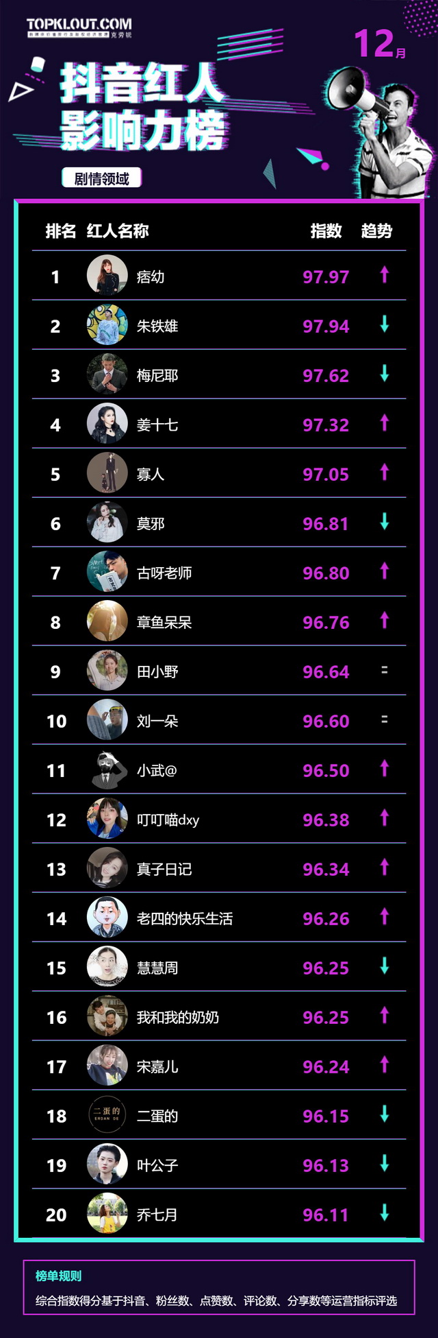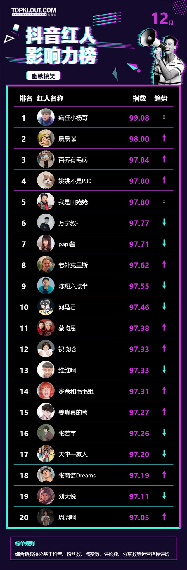 12月《抖音红人影响力榜》终于来啦!