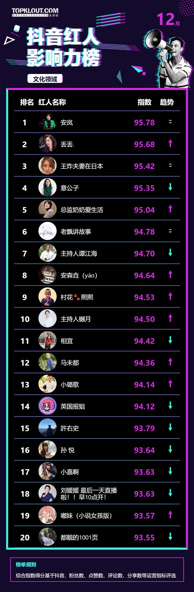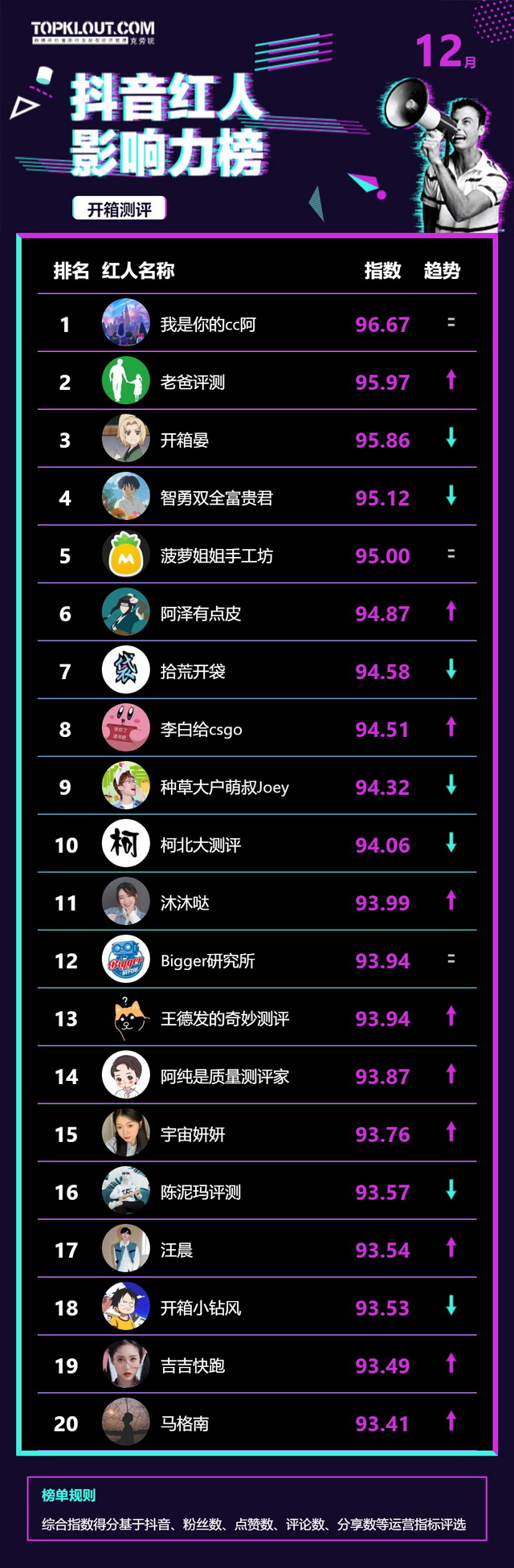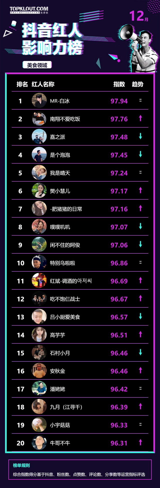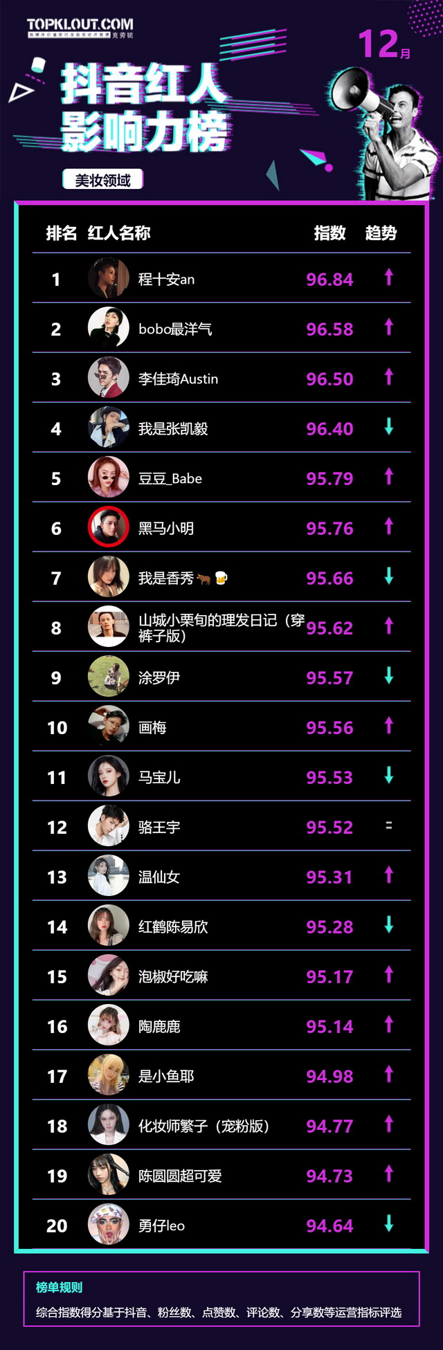 12月《抖音红人影响力榜》终于来啦!