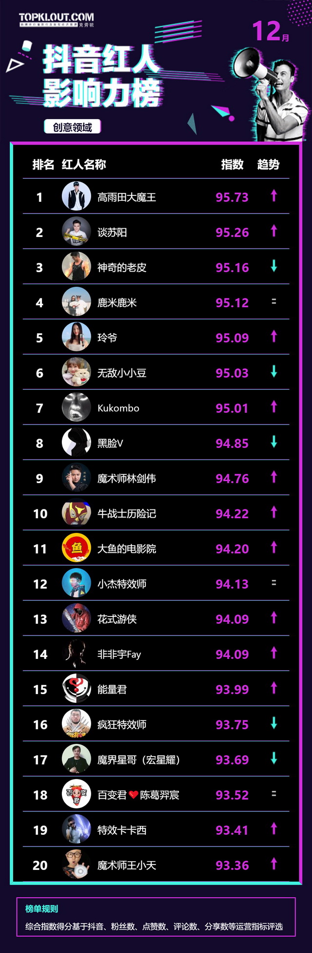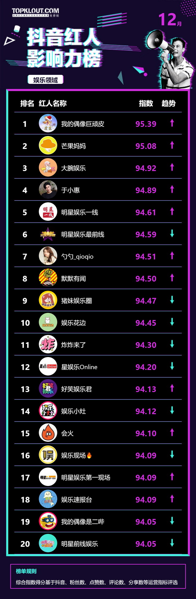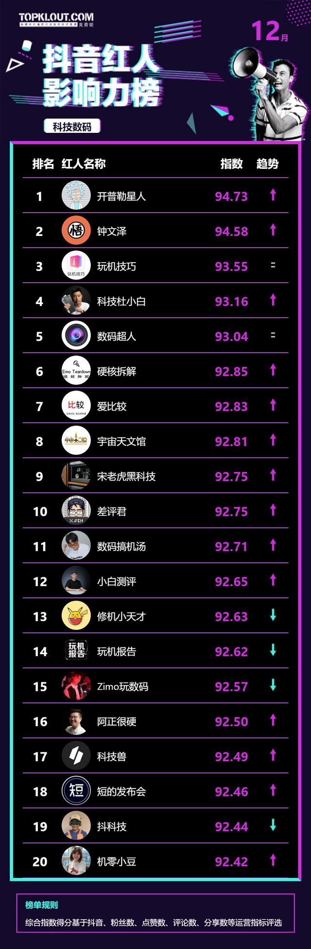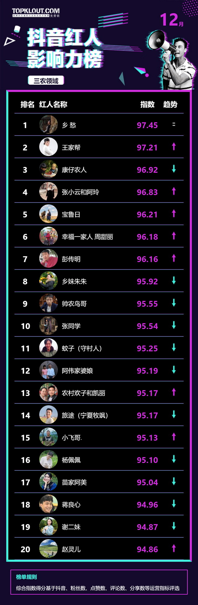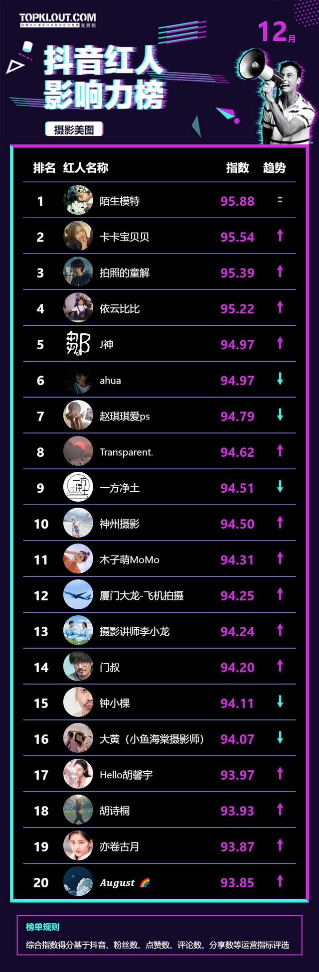 12月《抖音红人影响力榜》终于来啦!