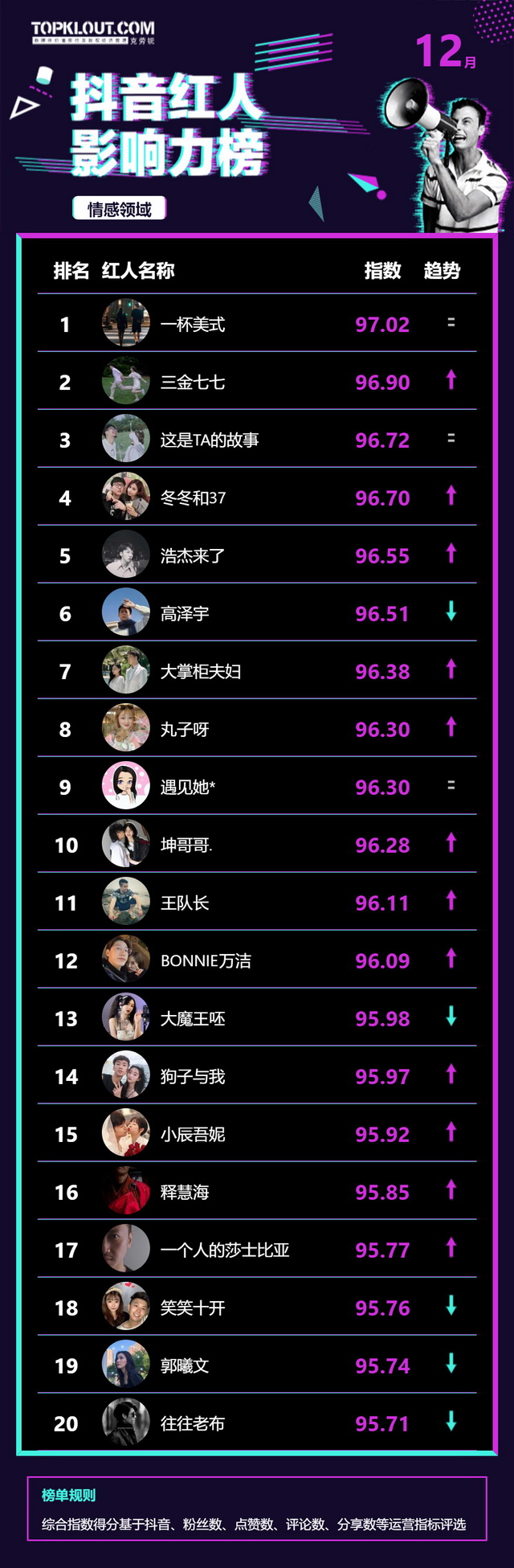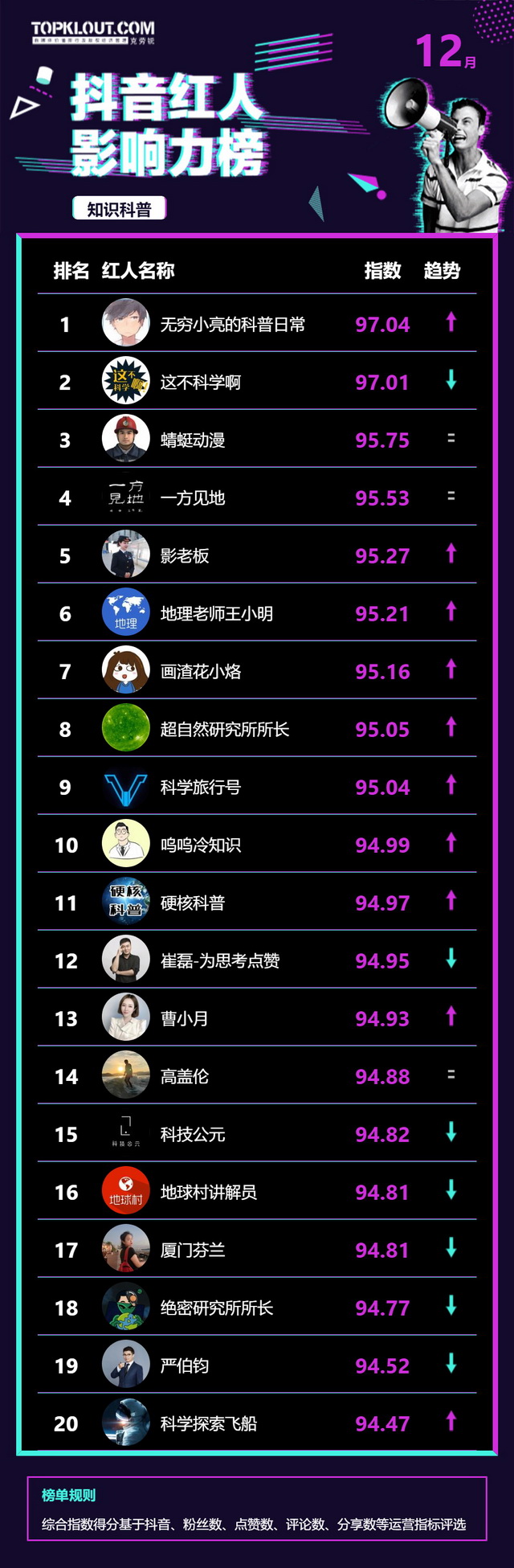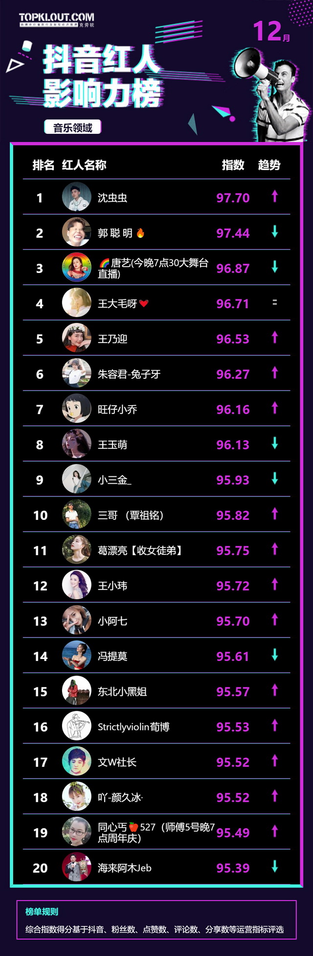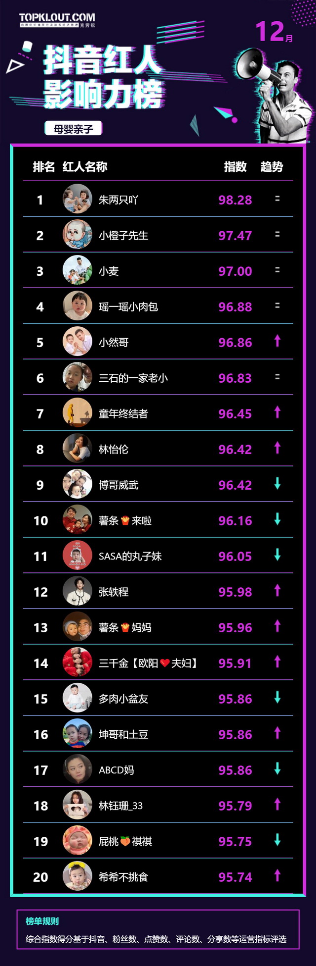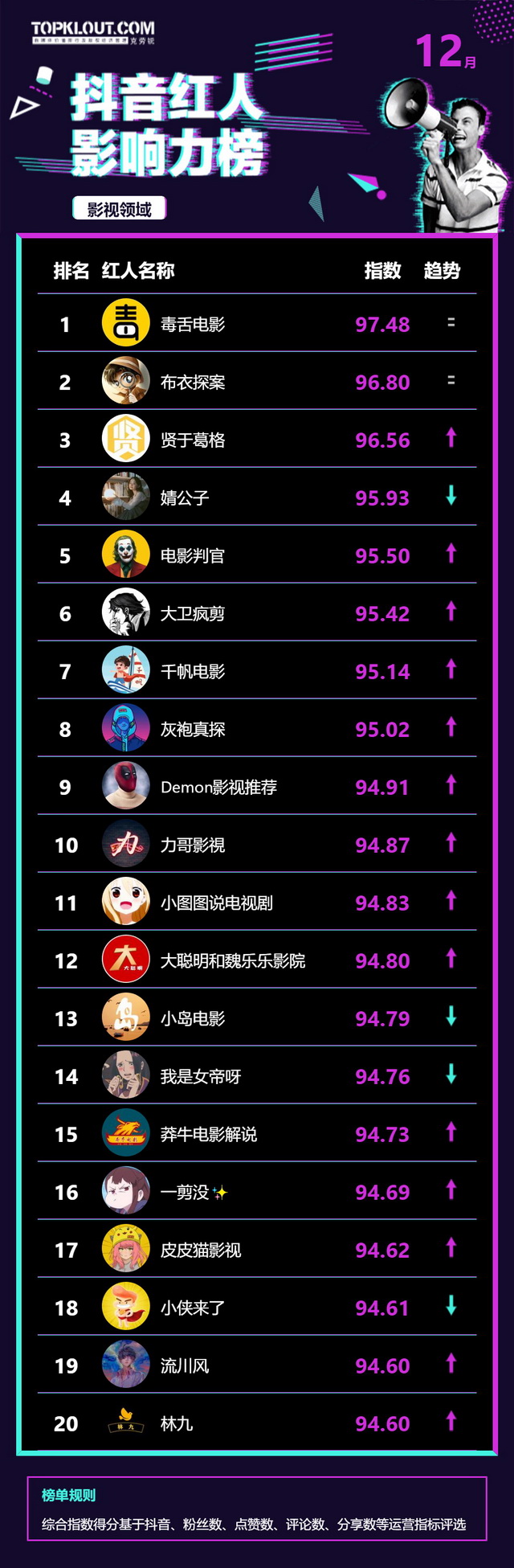 12月《抖音红人影响力榜》终于来啦!