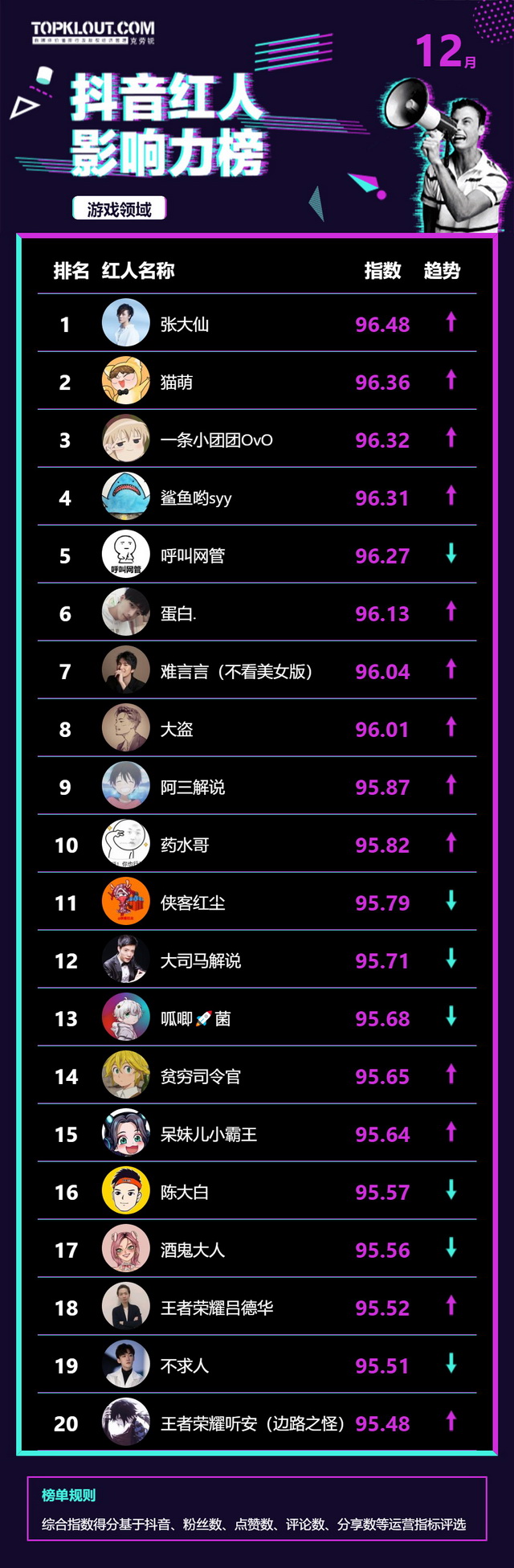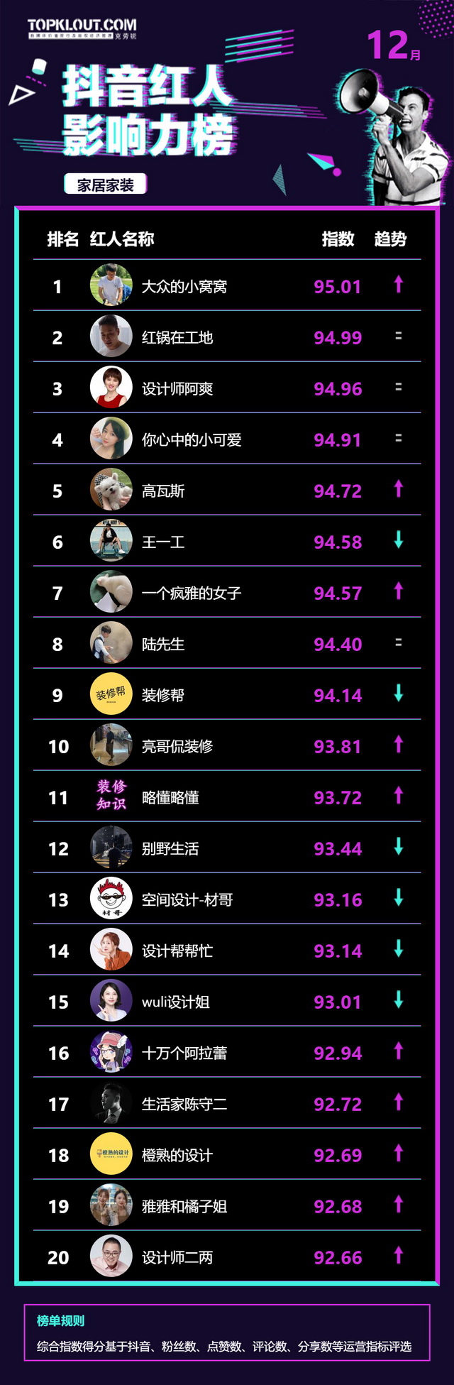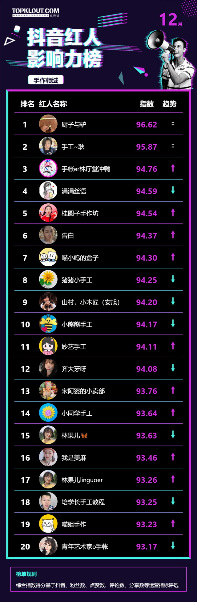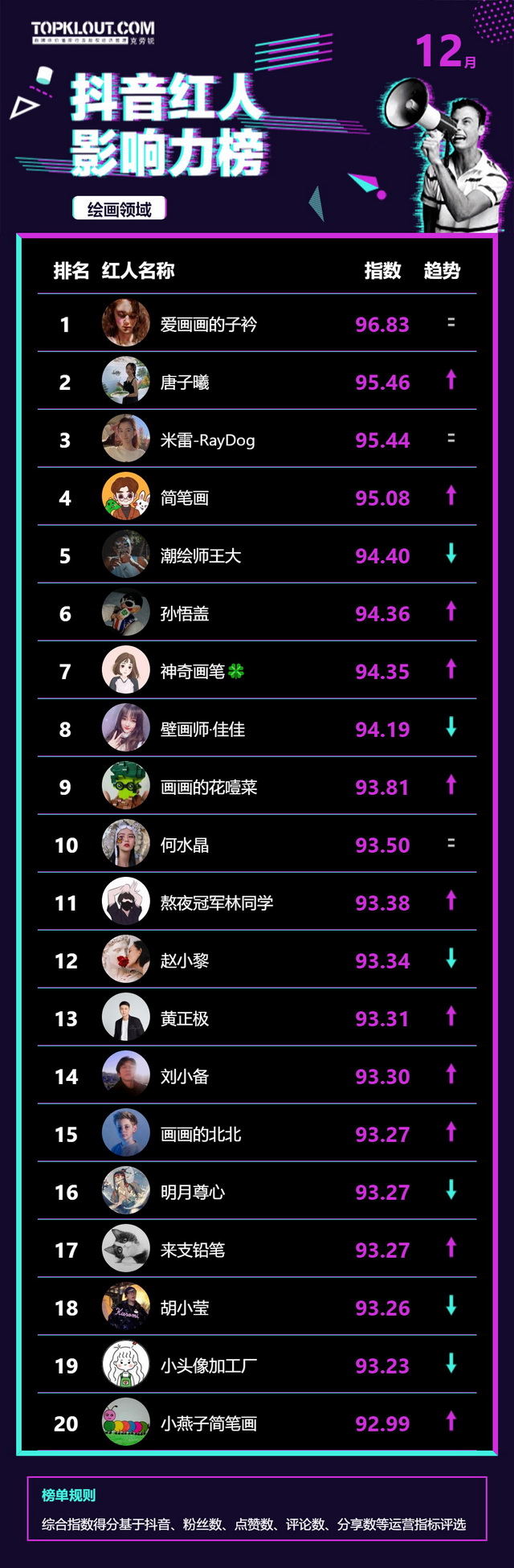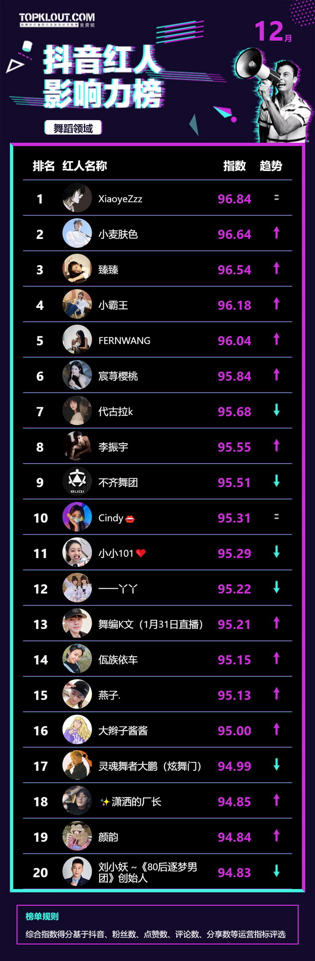 12月《抖音红人影响力榜》终于来啦!