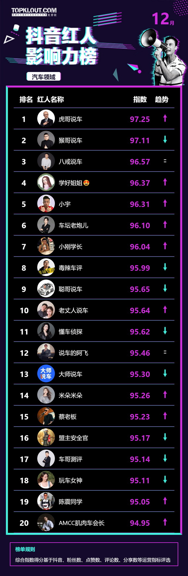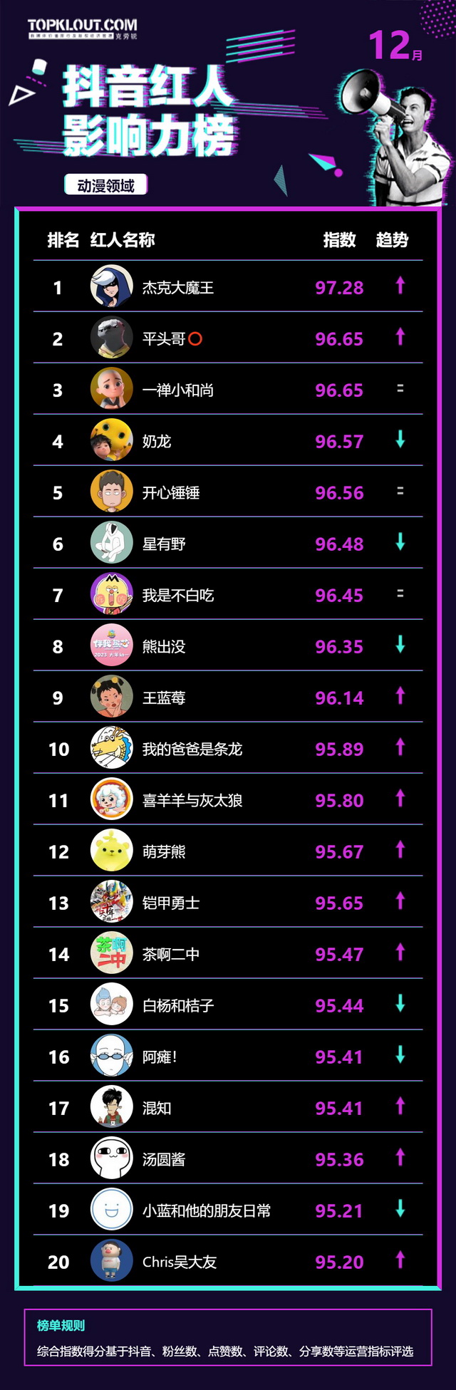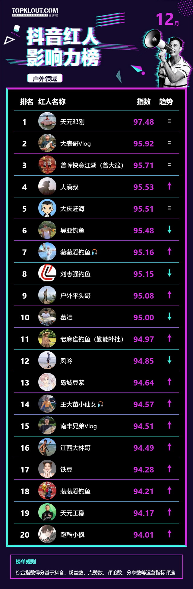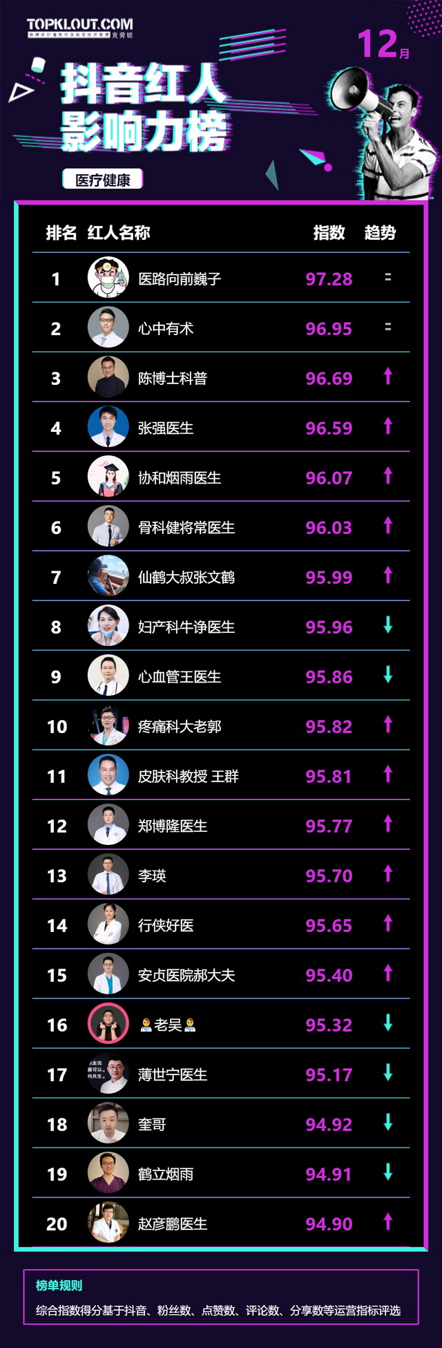 12月《抖音红人影响力榜》终于来啦!
