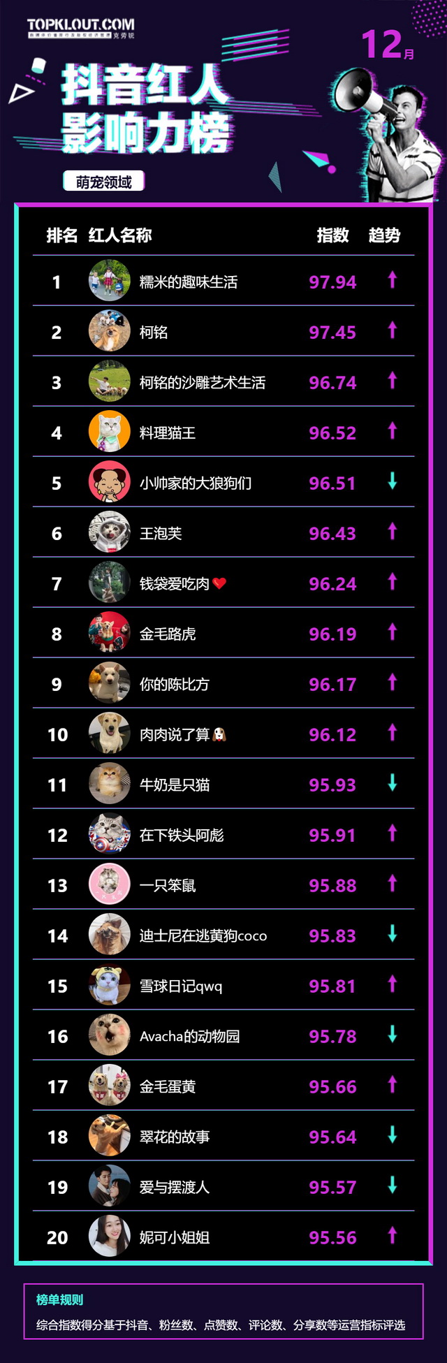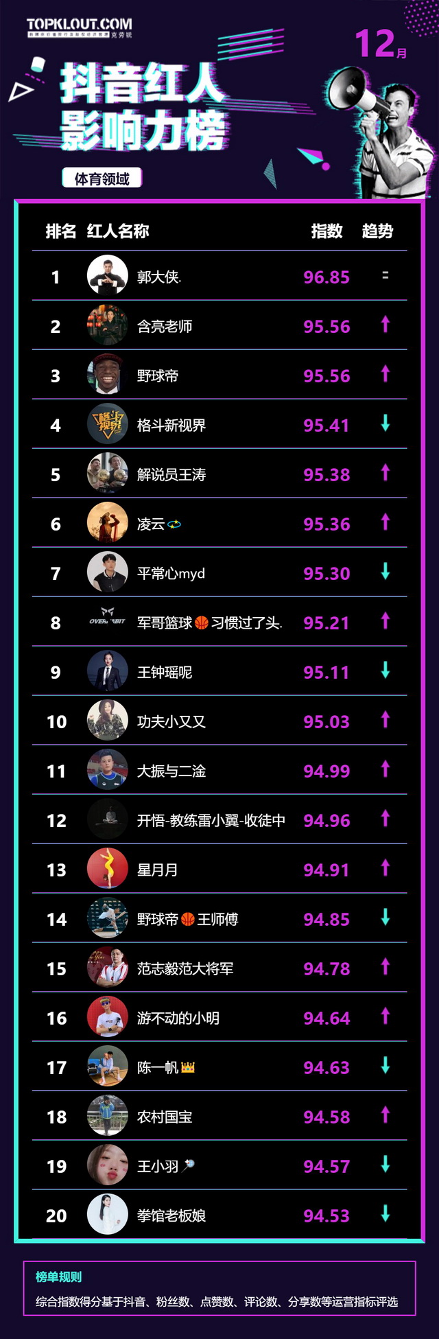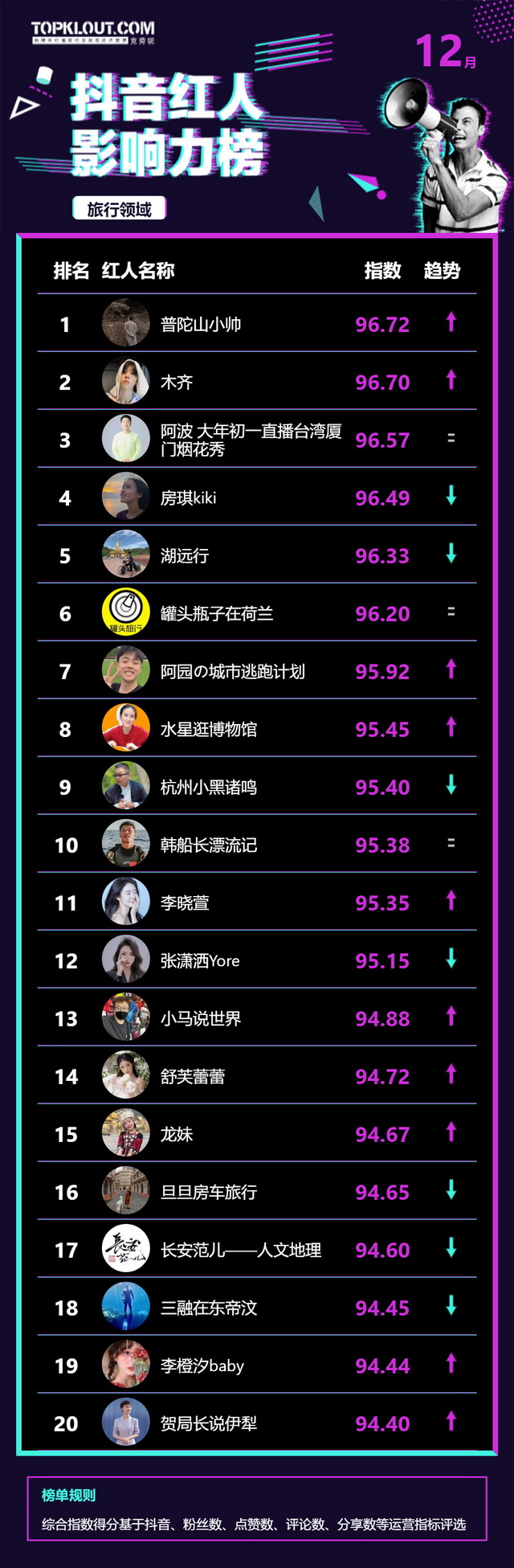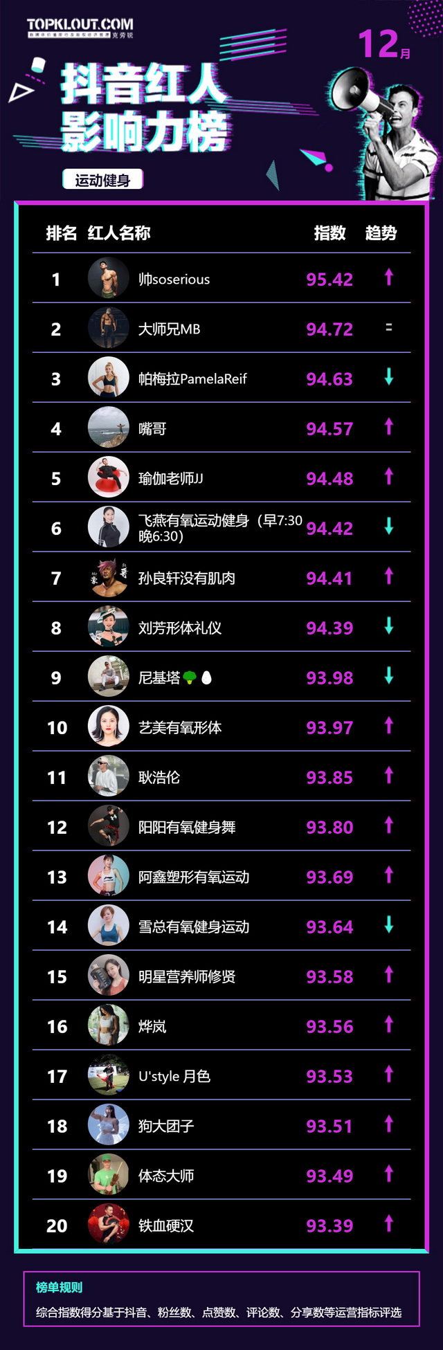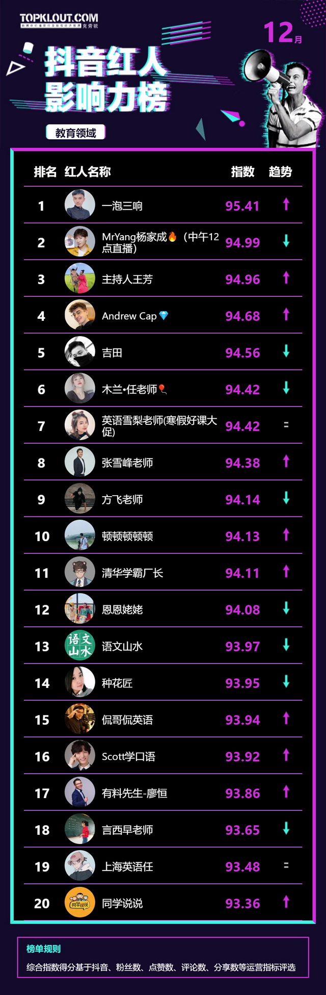 12月《抖音红人影响力榜》终于来啦!
