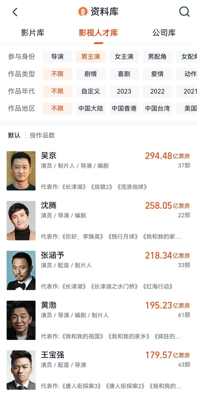 值得注意的是,吴京主演作品票房突破 294.48 亿元,超沈腾 258.05 亿元再创纪录,而且大概率会在这两天内突破 300 亿,他也将成为中国影史上首个 300 亿票房影帝。