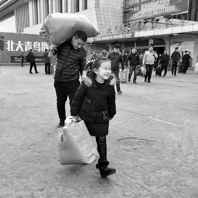▲ 下了火车,就要和家人团聚了,父女俩的心里甭提多高兴了。