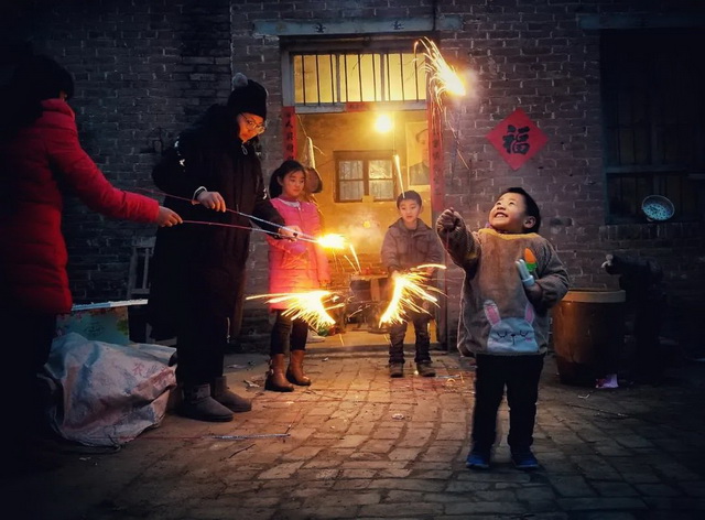 ▲ 今年春节,3岁大的儿子第一次回山东老家,大年初二,晚饭后陪儿子放烟花,过新年,仿佛又回到了童年。