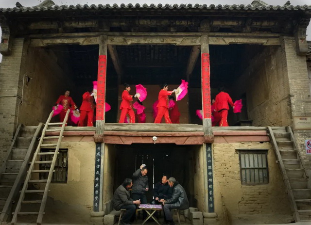 ▲ 春节之际,邯郸涉县原曲村春节娱乐活动,台上舞蹈翩翩,台下几个村民扑克玩的热火朝天!玩自己喜欢的才快乐。