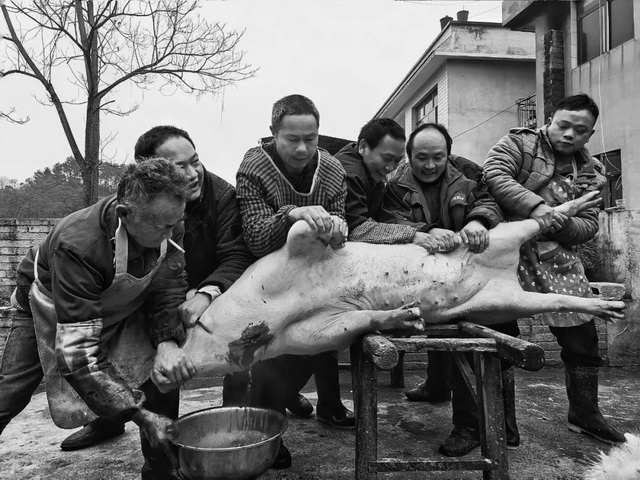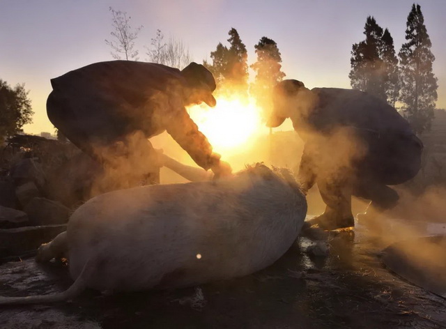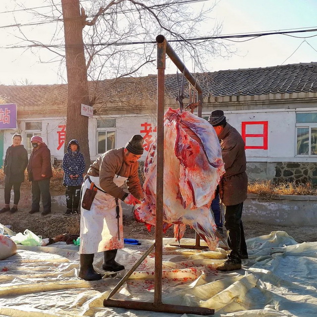 ▲ 上班的路上,看见路边正在杀牛,才知道年就要来了。