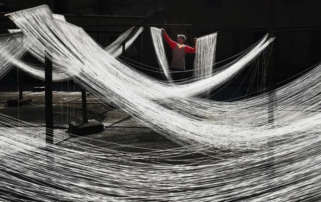 ▲ 临近大年,线面作坊特别红火,阳光下,千丝万缕,线面飘香。