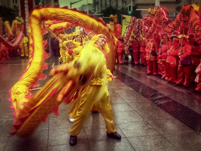 ▲ 2019年1月29日农历小年,武汉百步亭社区举办百家宴暨文化赶集会。舞龙表演为活动呈现了浓郁年味。