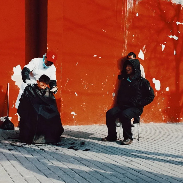 ▲ 放假了,年前来北京旅游,路边看到有剪头发的。很多孩子都不大情愿剪头,而大人总是带着辞旧迎新的期盼看着这一切。背景的红墙也特别好。于是我拍下了这张照片。