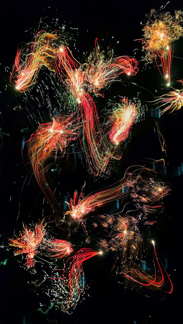 ▲ 除夕夜零点钟,新年的钟声敲响,绚丽多彩的烟花,把夜空点亮,拿起手机用光绘模式,拍摄下这美丽的瞬间。欣赏一下,真像一幅抽象画。