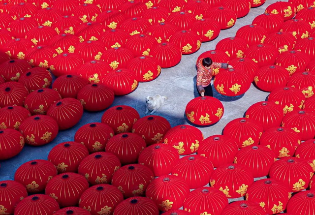 ▲ 大红灯笼晒满院坝,满地“中国红”令人惊艳。