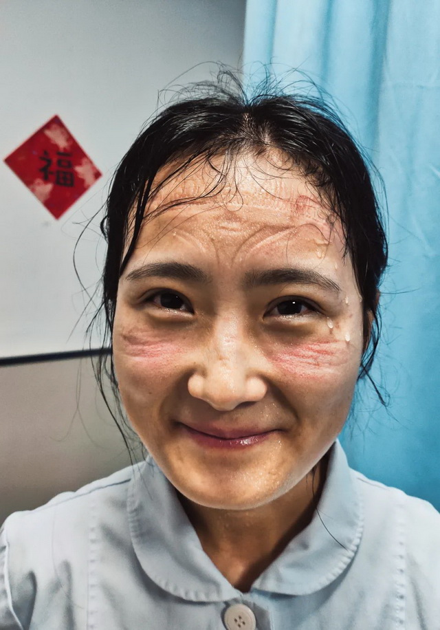 ▲ 这是一个特殊的春节,作为一线医务工作者,今年每人都贴了一张福。当她脱下穿了12小时的防护服,满脸都是压痕与汗水,却依然露出微笑时。我知道,病毒从未战胜希望。