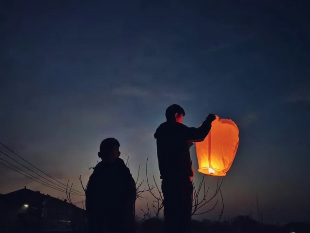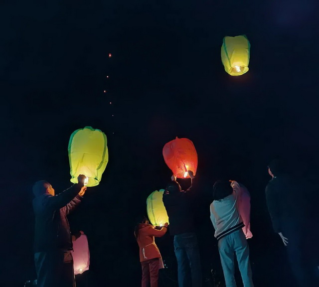 ▲ 迎着微弱的晚霞,点起祈愿灯,带着美好祝愿起飞,愿新的一年也满怀希望,勇往直前。