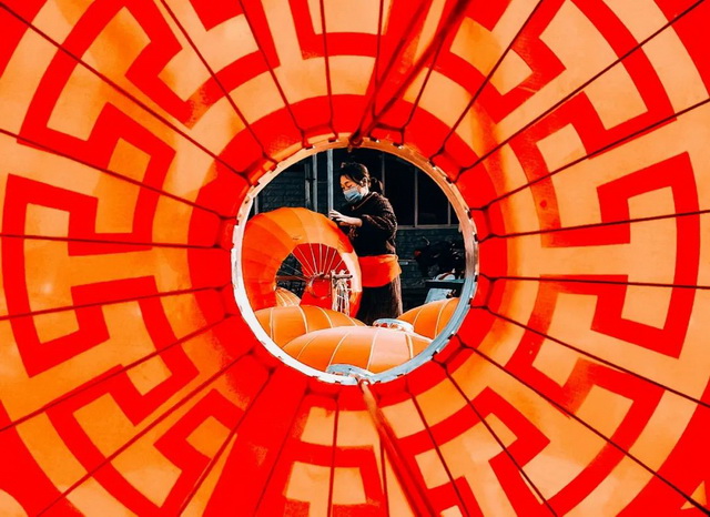 ▲ 2021年1月22日,春节临近,大红灯笼迎来销售旺季,工人正在为客户赶制红灯笼。