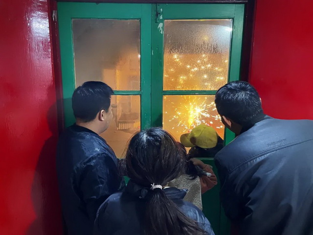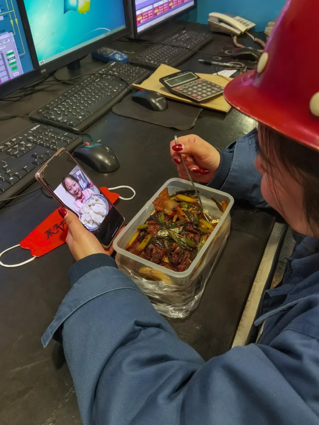 ▲ 妈妈在岗位上,孩子在家里,通过手机一起吃年夜饭。