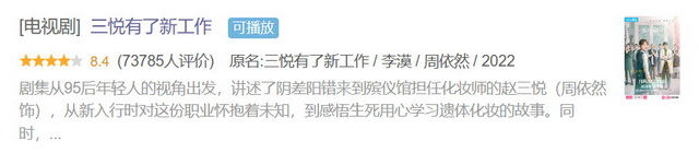 B站作为后起之秀,继去年的《突如其来的假期》后,今年也拿出了《三悦有了新工作》供市场检验。在豆瓣,有超过7万人为这部剧打出了8.4的高分,排在去年豆瓣剧集评分榜单的第三位。