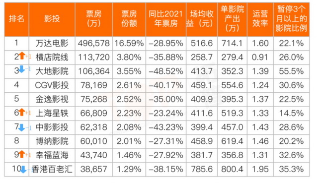 更重要的是,下游的生存状况已经到了不得不求变的时刻。拓普报告显示,2022年影院场均收益292.8元,同比下降23.4%;单影院日均收益跌破万元,仅为2019年疫情前的一半。
