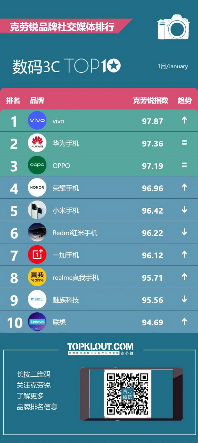 克劳锐独家发布《品牌社交媒体排行榜》,更多垂类、更细划分,全方位、多维度综合评定品牌影响力。快一起来看看吧~