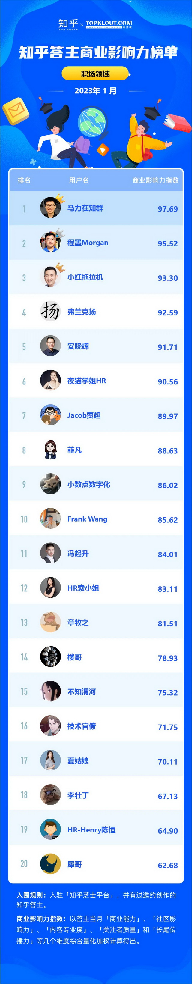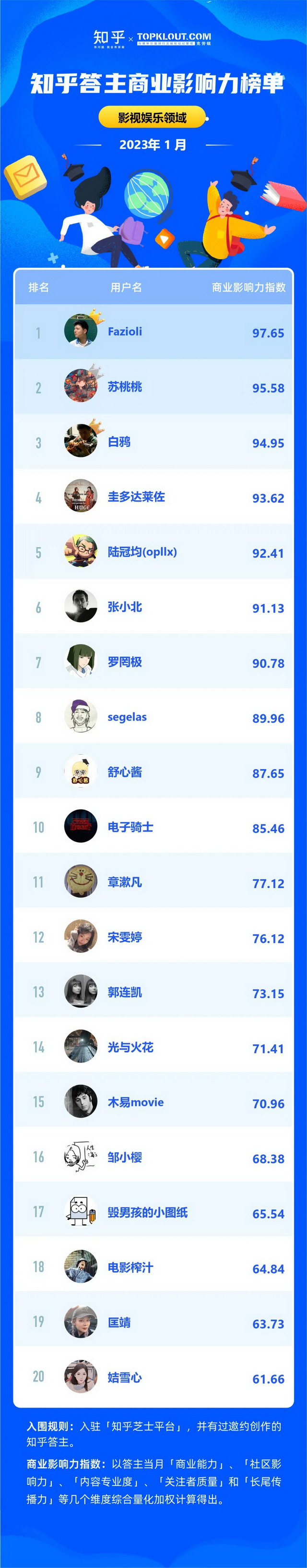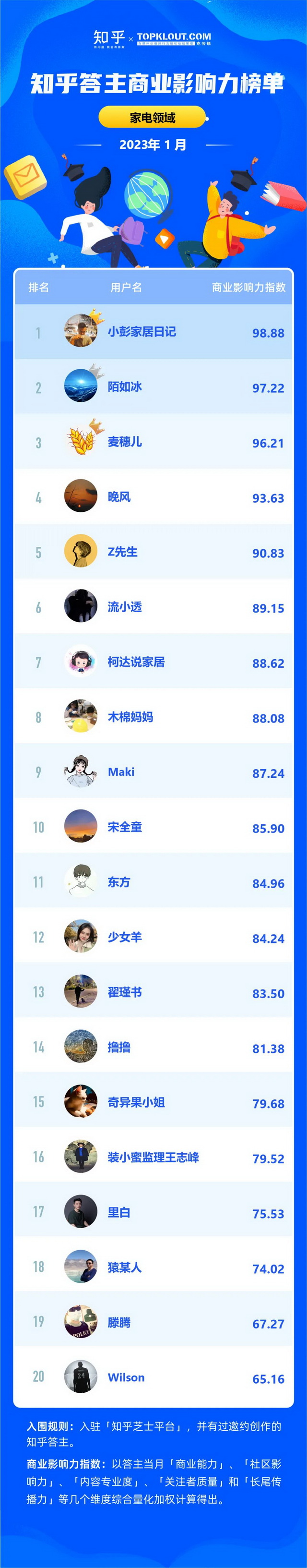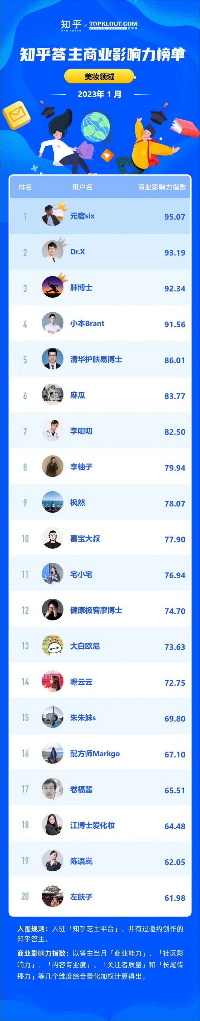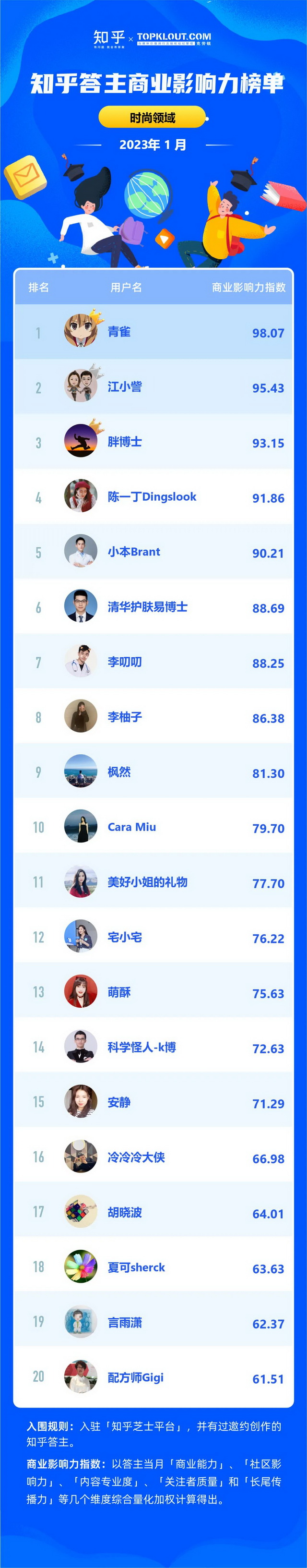 克劳锐联合知乎共同洞察答主商业价值,每月向行业中给出优秀答主的商业影响力排名结果,并发布《知乎答主商业影响力榜》,深度拆解不同领域的答主特征,解析答主的商业影响力。