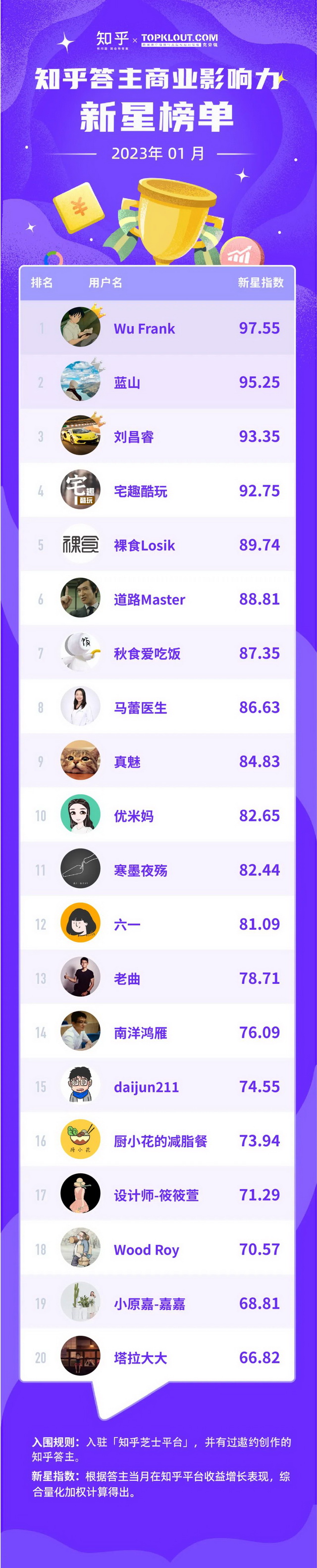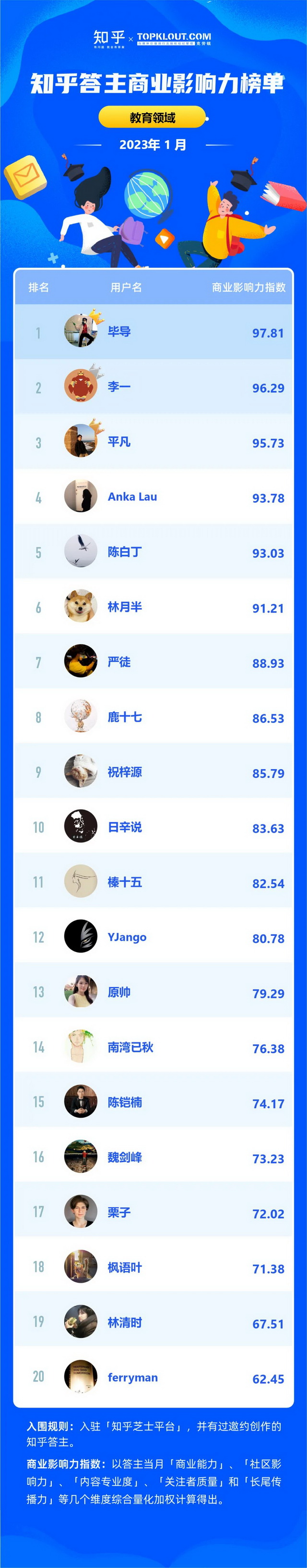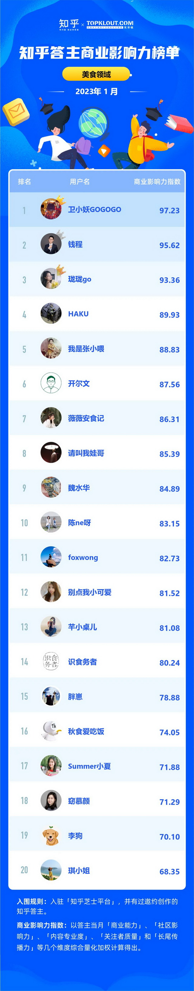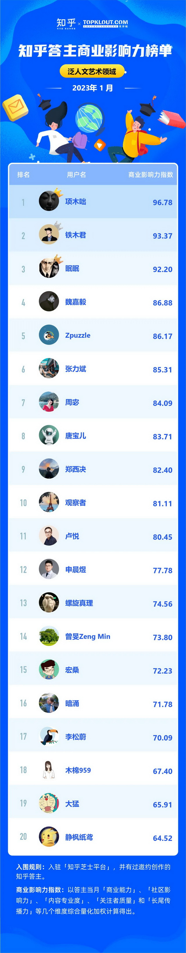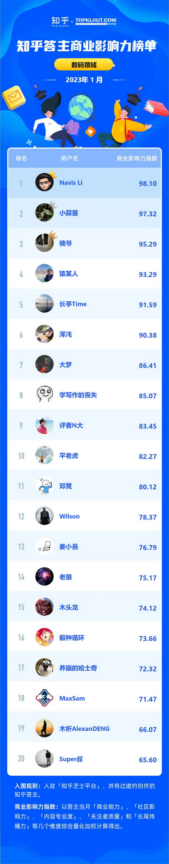 克劳锐联合知乎共同洞察答主商业价值,每月向行业中给出优秀答主的商业影响力排名结果,并发布《知乎答主商业影响力榜》,深度拆解不同领域的答主特征,解析答主的商业影响力。