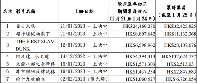 香港票房有限公司《2023农历新年贺岁档期电影票房简报》