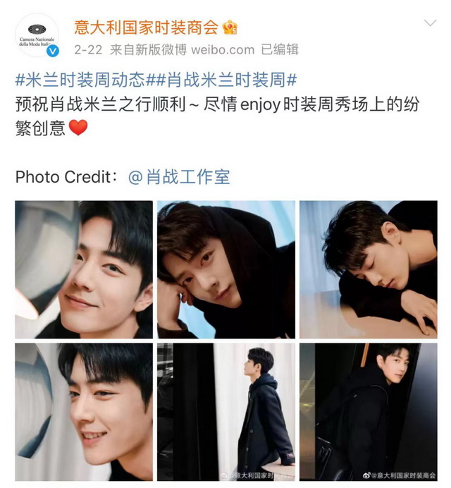 而此前米兰时装周的主办方意大利国家时装商会就发布肖战博文预祝米兰之行顺利,能够首开先河被主办方发博祝福,也足见肖战的影响力。截至目前为止,#肖战米兰时装周# 的话题阅读量已超过75亿,讨论量也有1千多万。而据海外网红营销平台Lefty.io的数据,肖战在时装周的近十日内,为TOD'S创造了350万美元EMV(赢得媒体价值)。