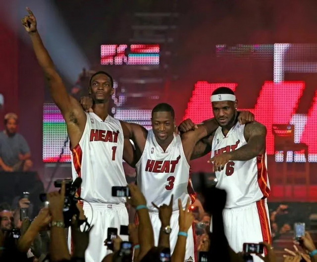 其中最著名的莫过于“没给家乡带来总冠军前我不会走”和“我要把天赋带去南海岸”。此事在NBA史称“决定一”,即2010年詹姆斯决定转会迈阿密热火队,与德怀恩·韦德和克里斯·波什组成“三巨头”。三人彼时都是联盟顶尖球员,也都处于职业生涯巅峰期,是一次没有先例、破坏平衡的联手。