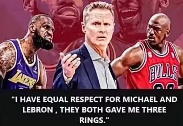 “10进总决赛6夺总亚军”本身也成了一句讽刺。球员时代是乔丹队友、教练时代多次率队与詹姆斯相遇的科尔便留下了一句:“我对乔丹和詹姆斯同等尊重,他们都让我收获了3枚冠军戒指。”