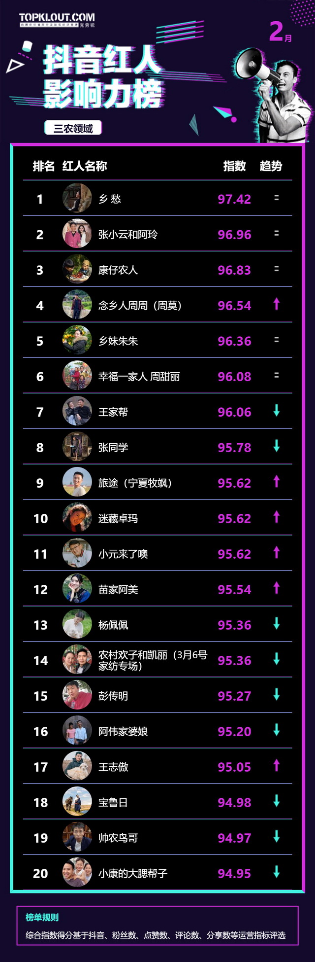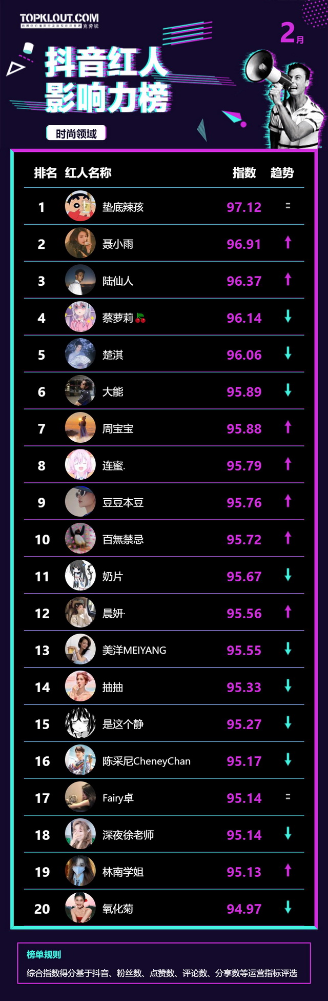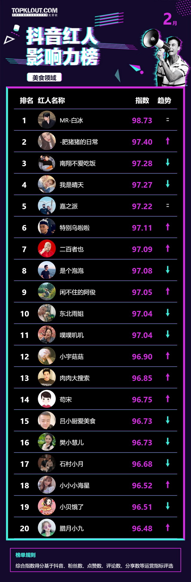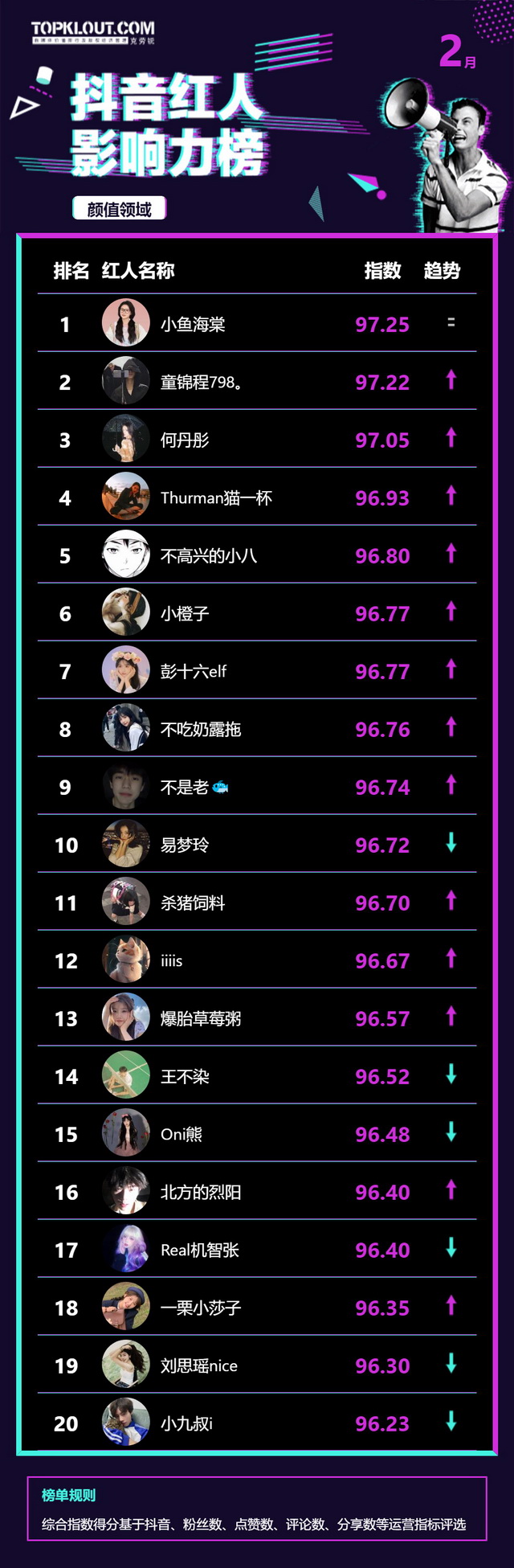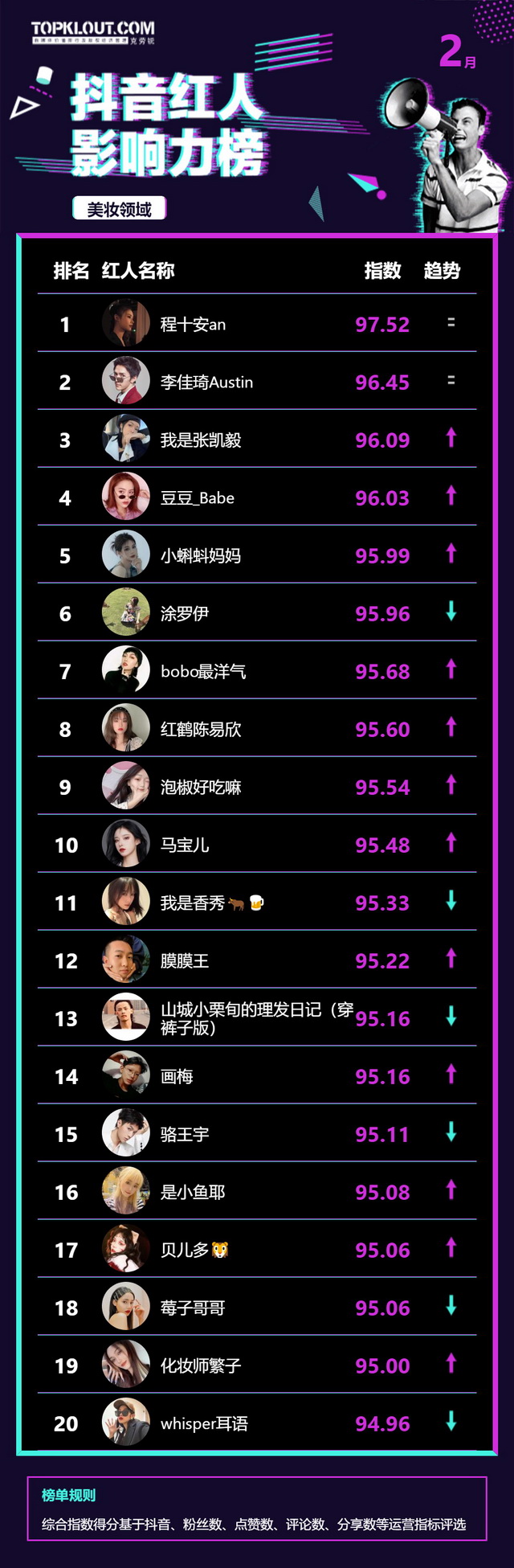 2月《抖音红人影响力榜》终于来啦!