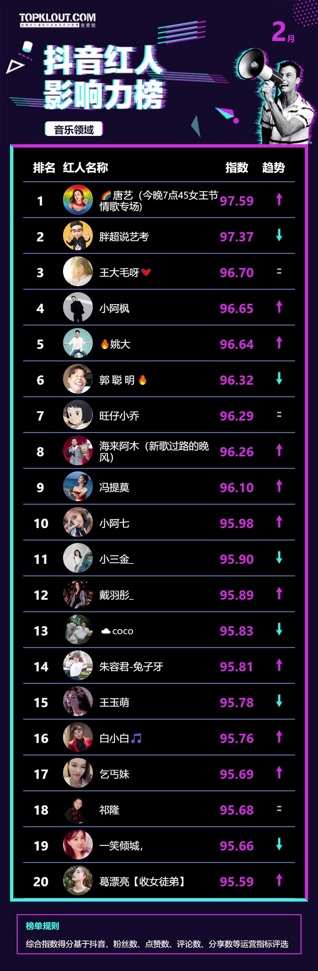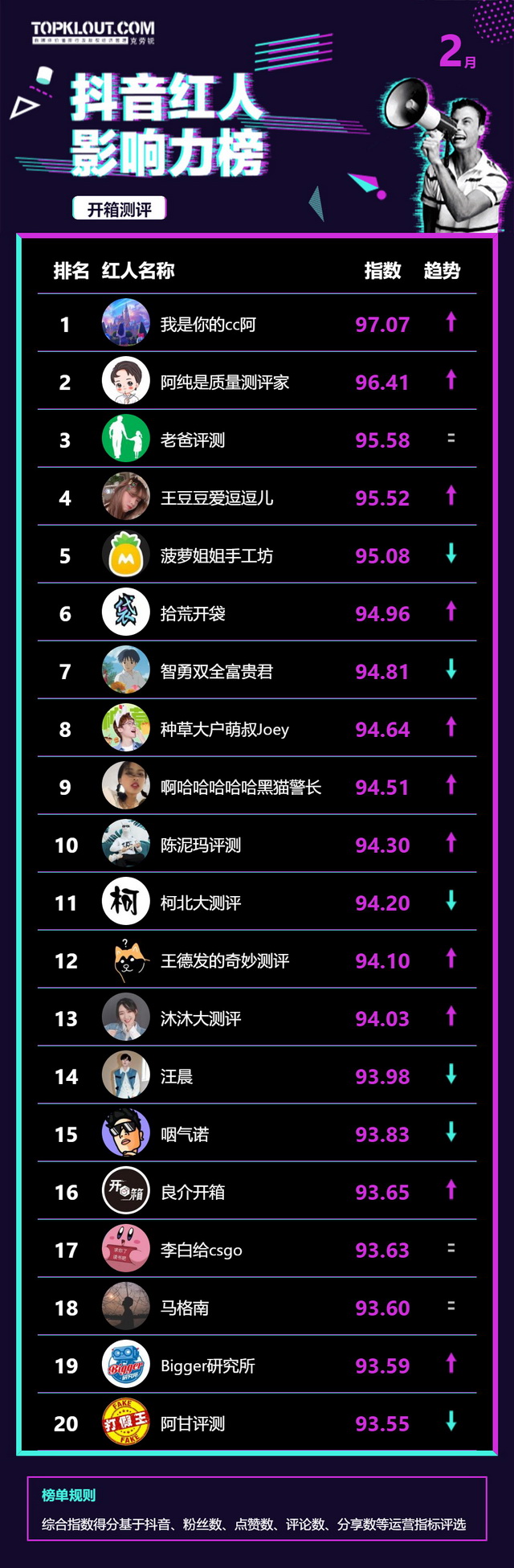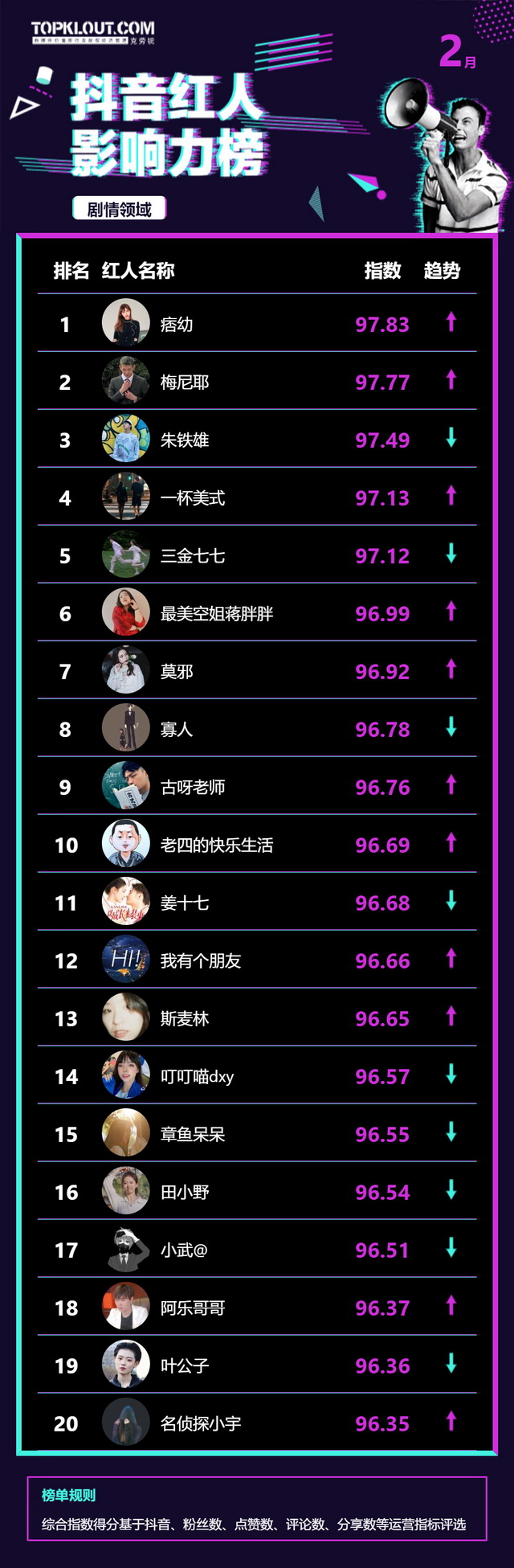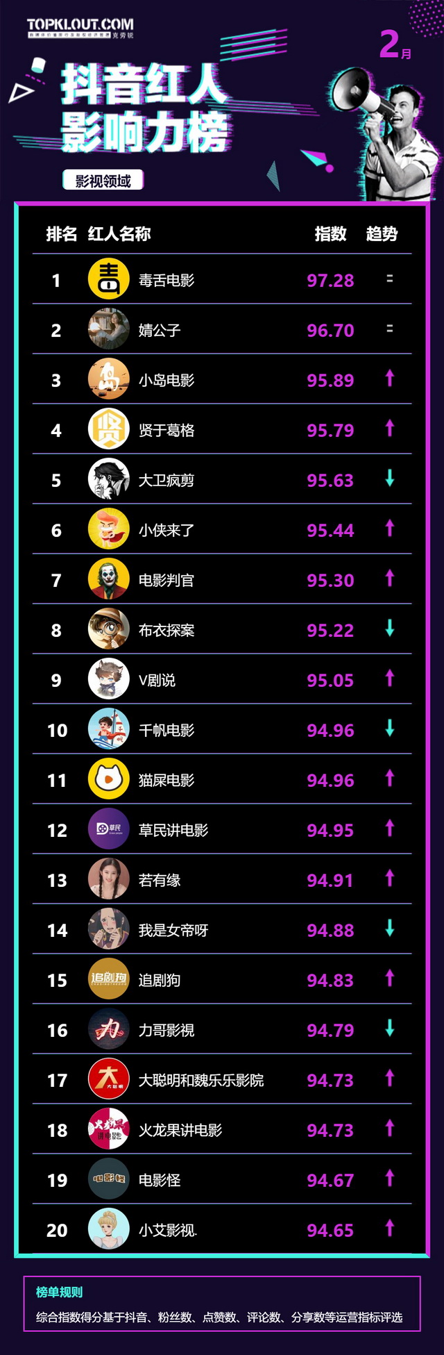 2月《抖音红人影响力榜》终于来啦!