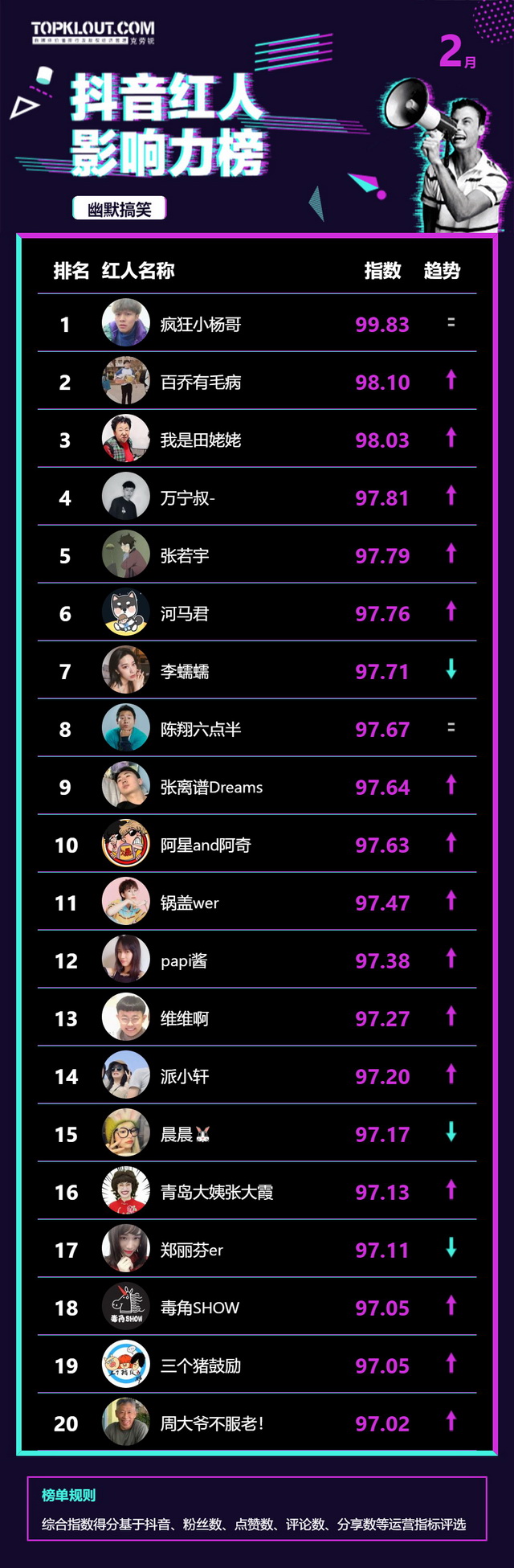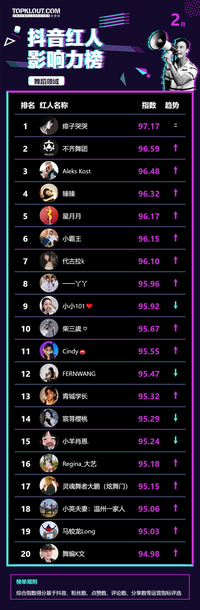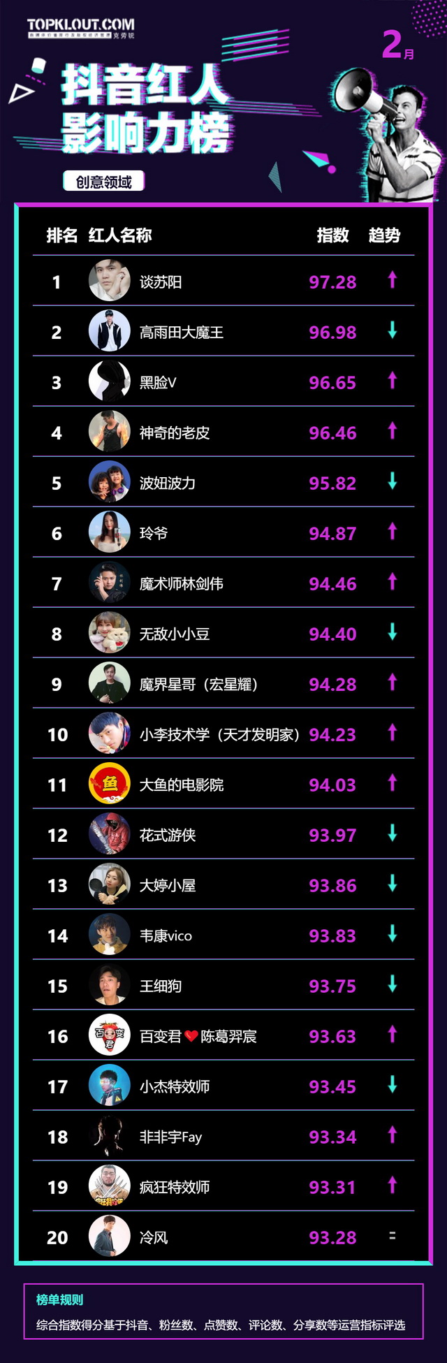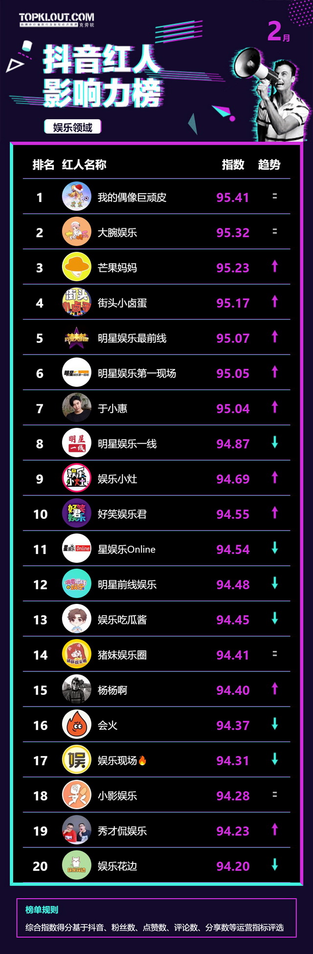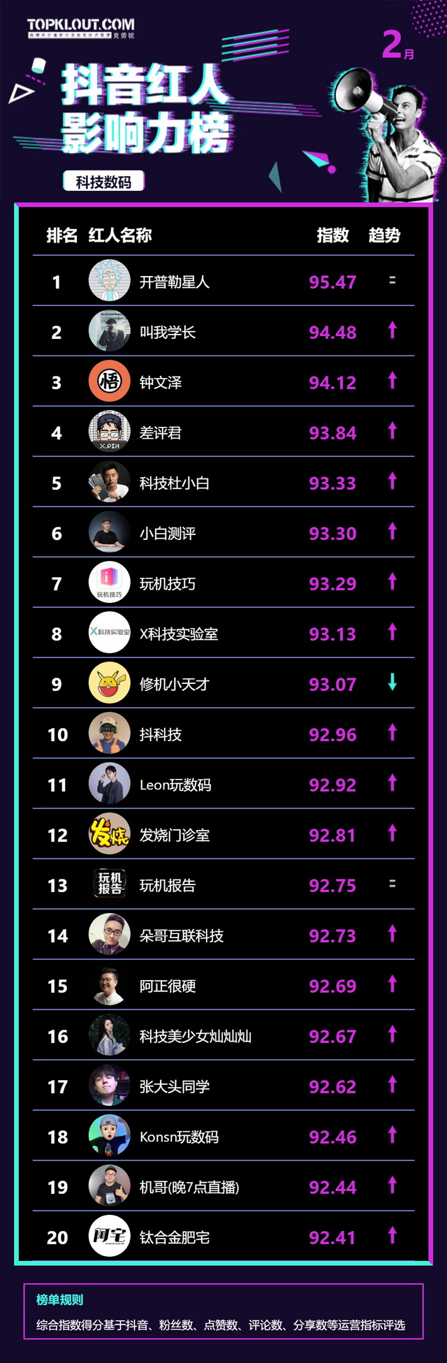 2月《抖音红人影响力榜》终于来啦!