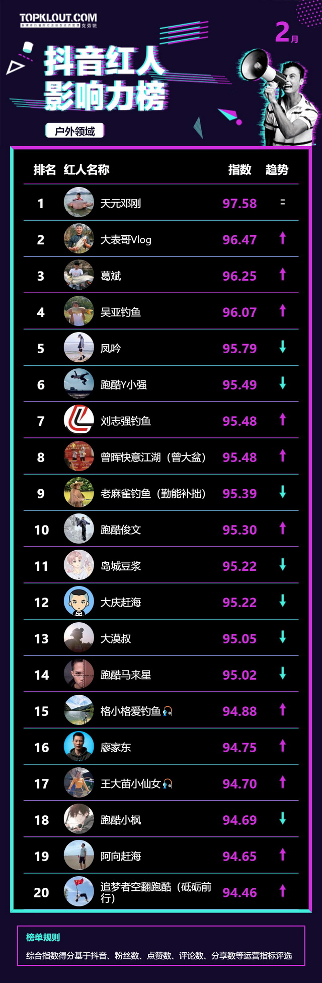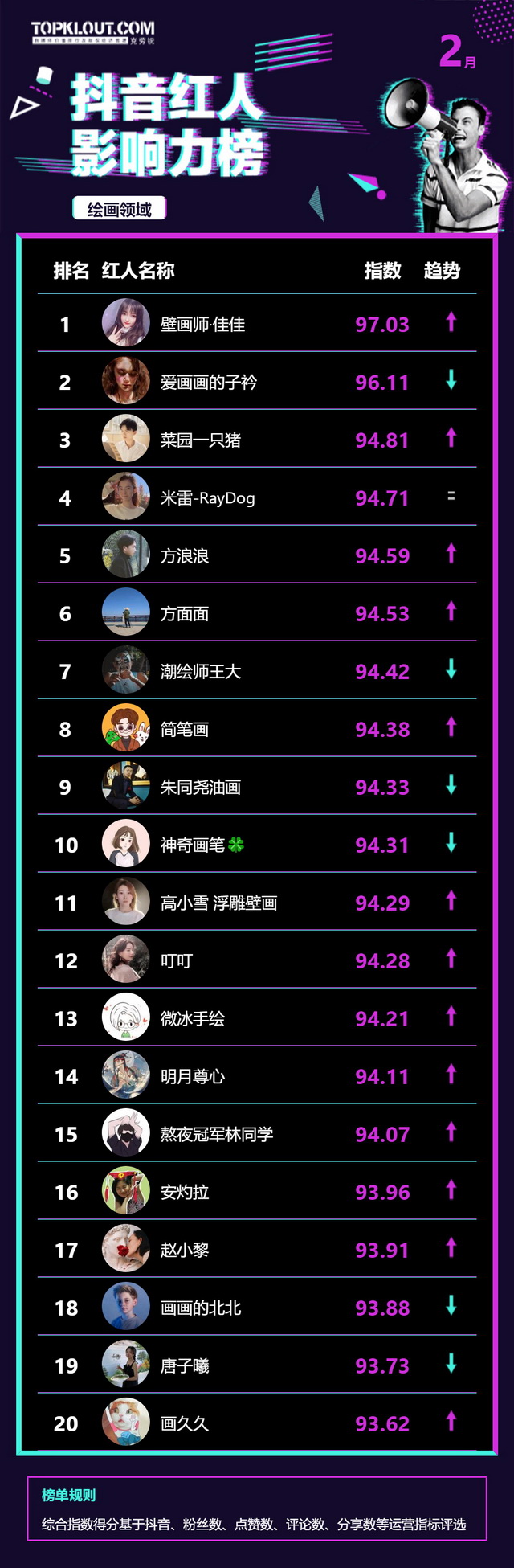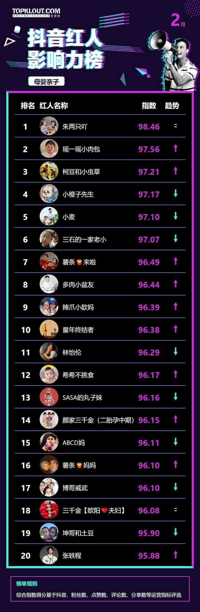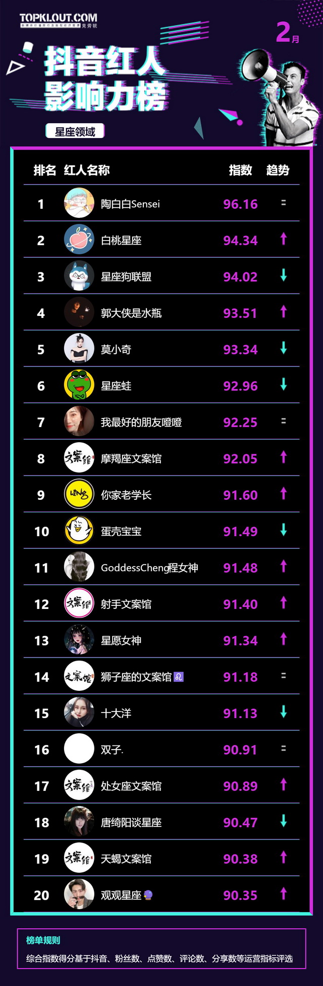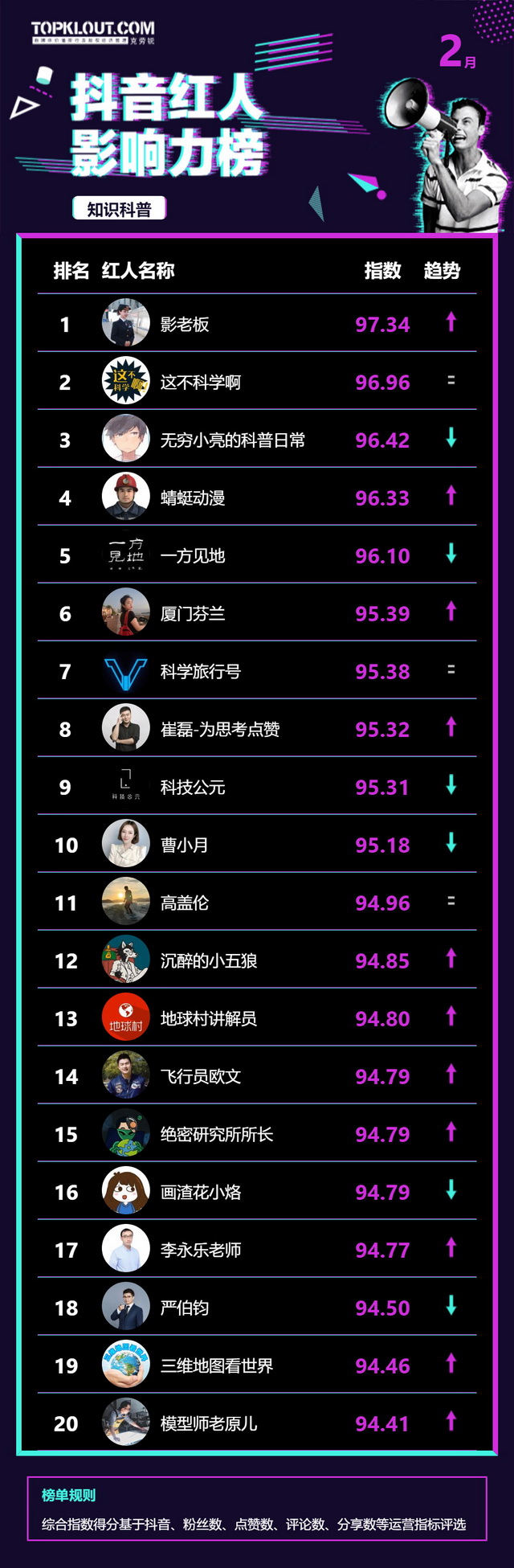 2月《抖音红人影响力榜》终于来啦!