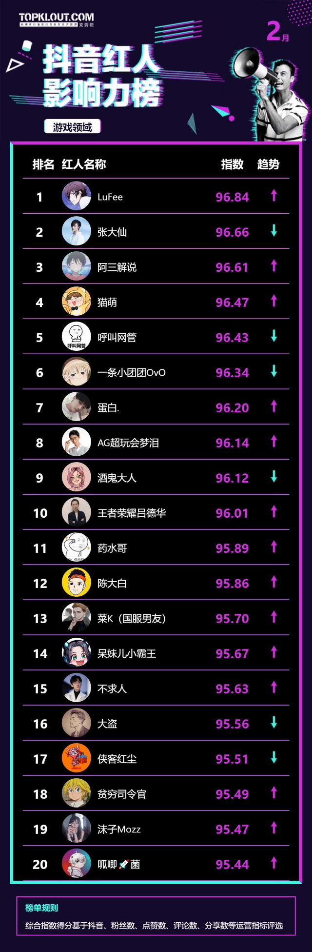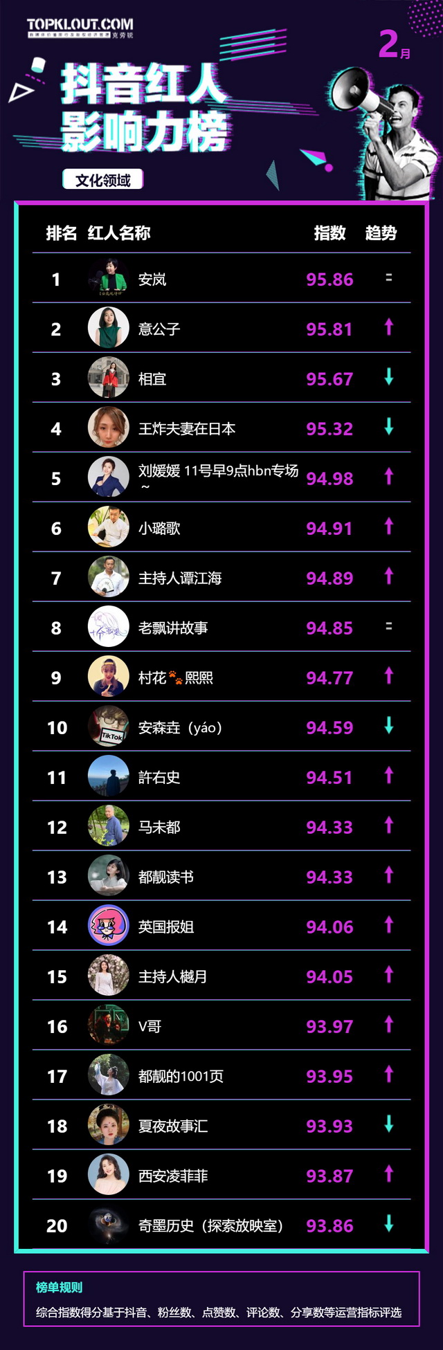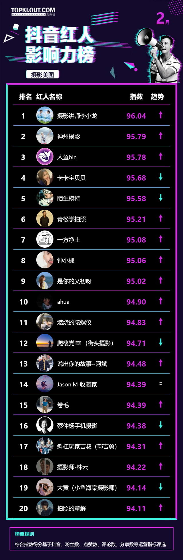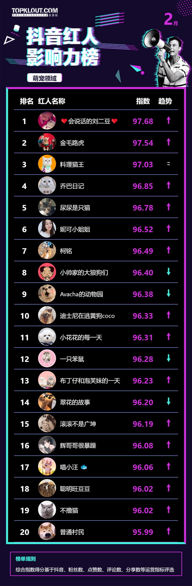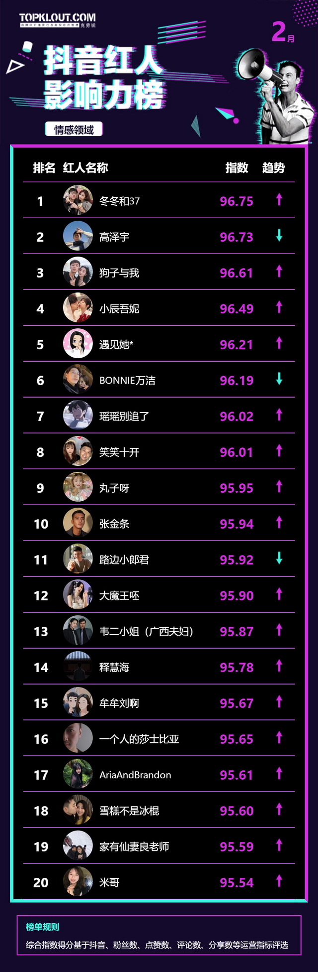 2月《抖音红人影响力榜》终于来啦!