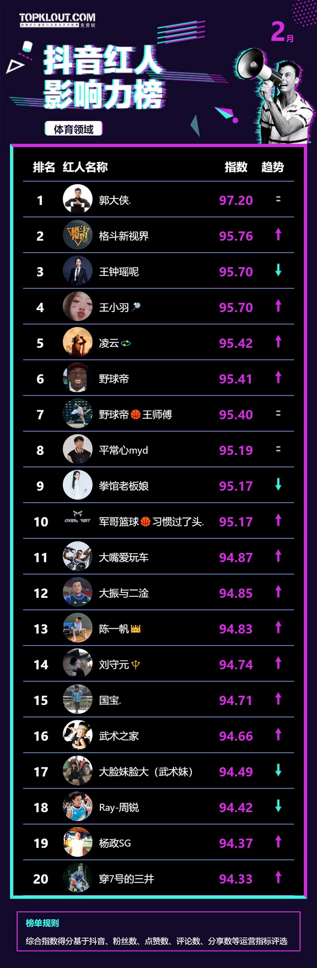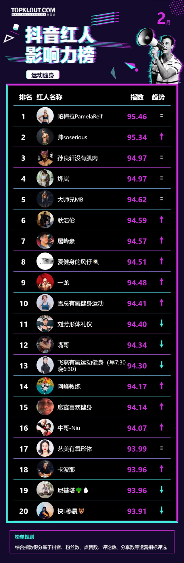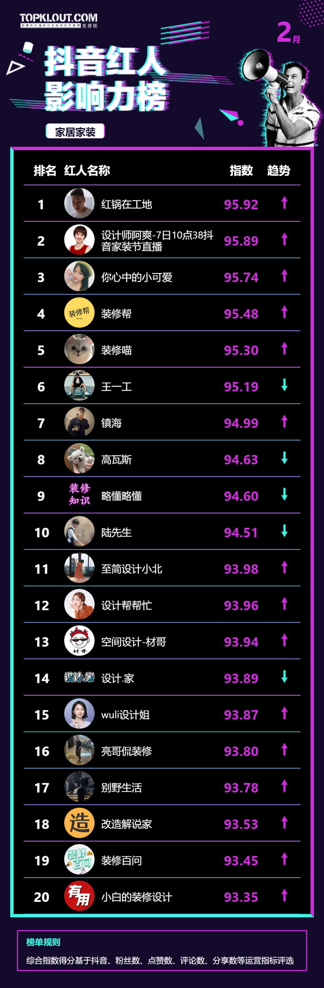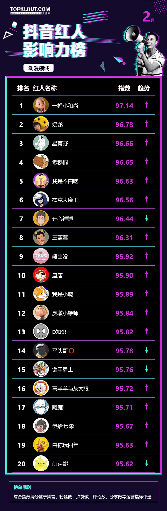 2月《抖音红人影响力榜》终于来啦!
