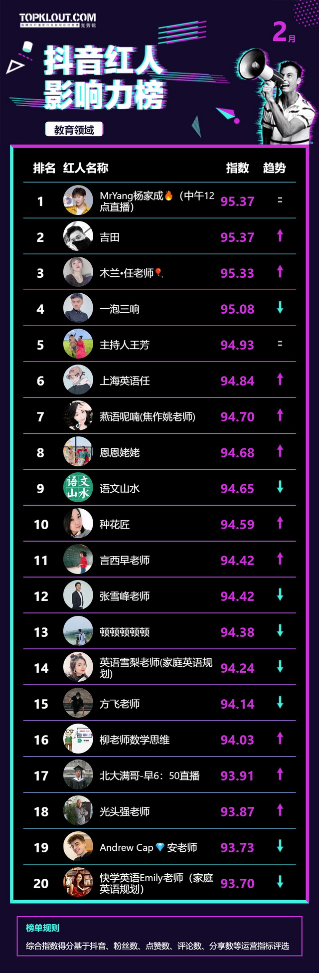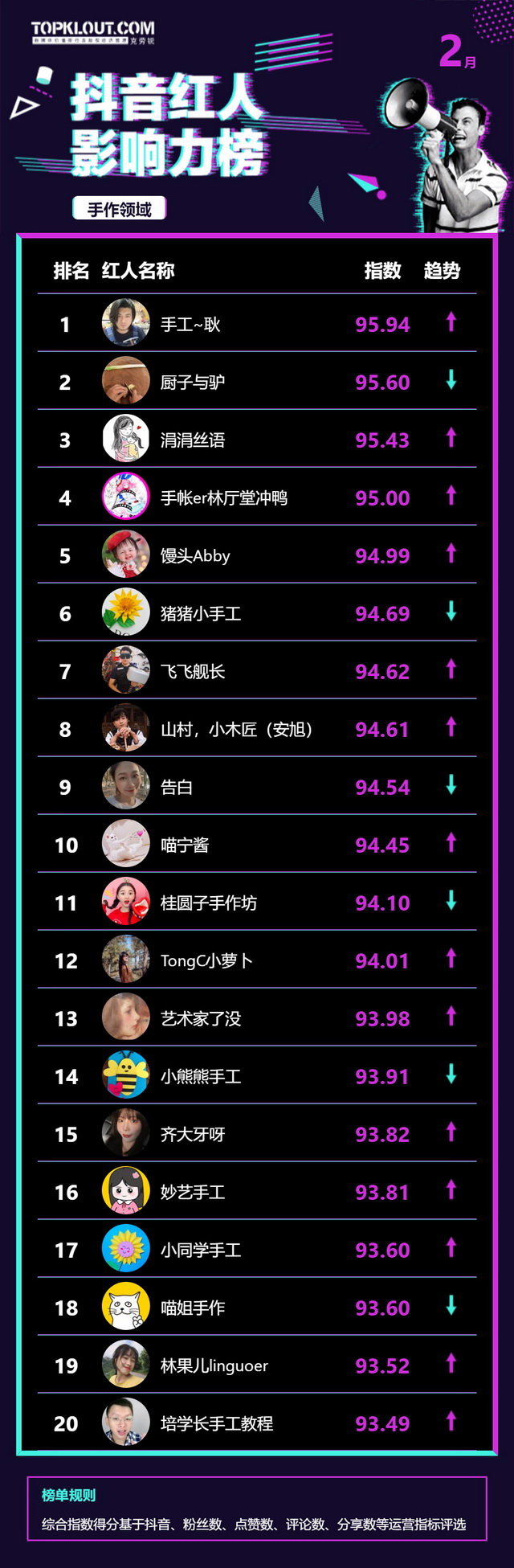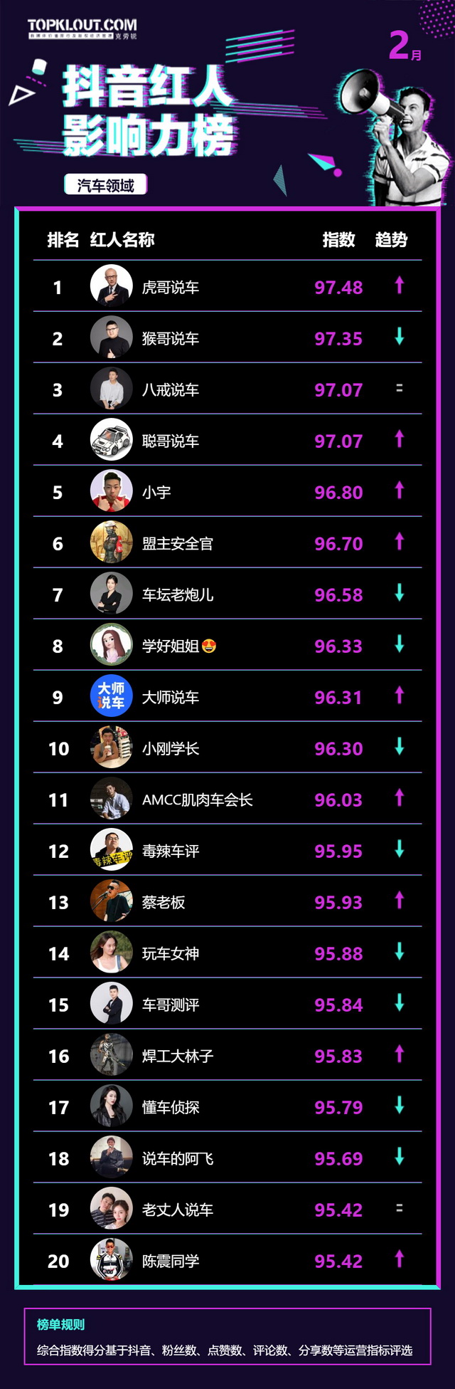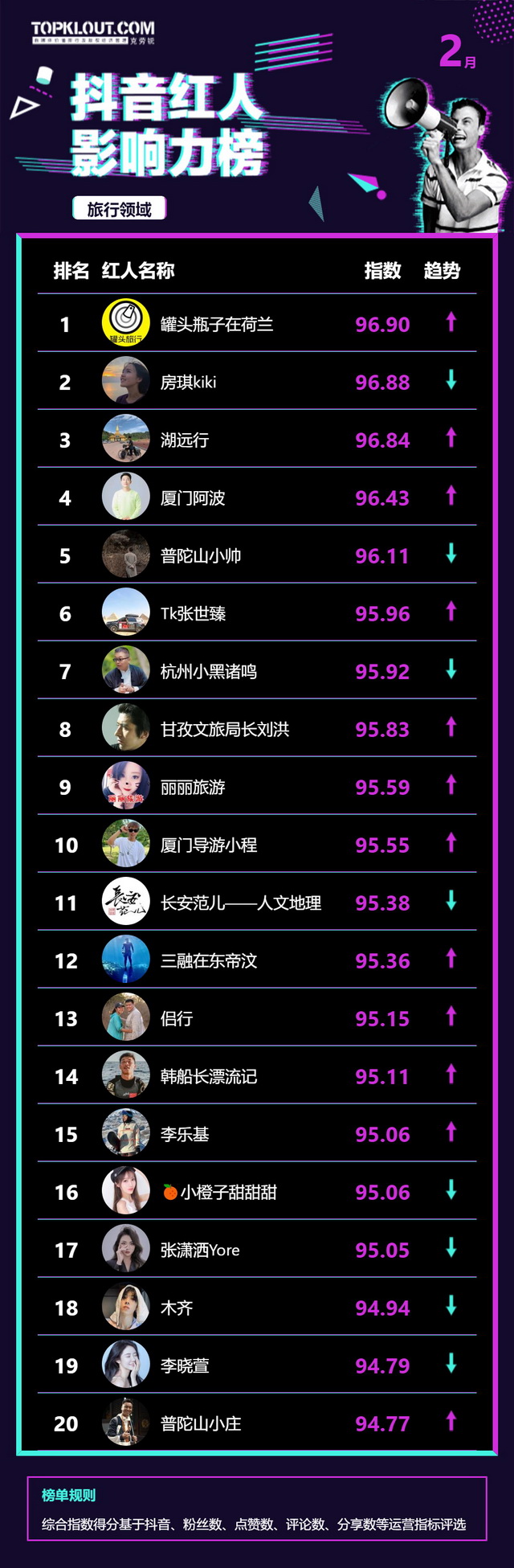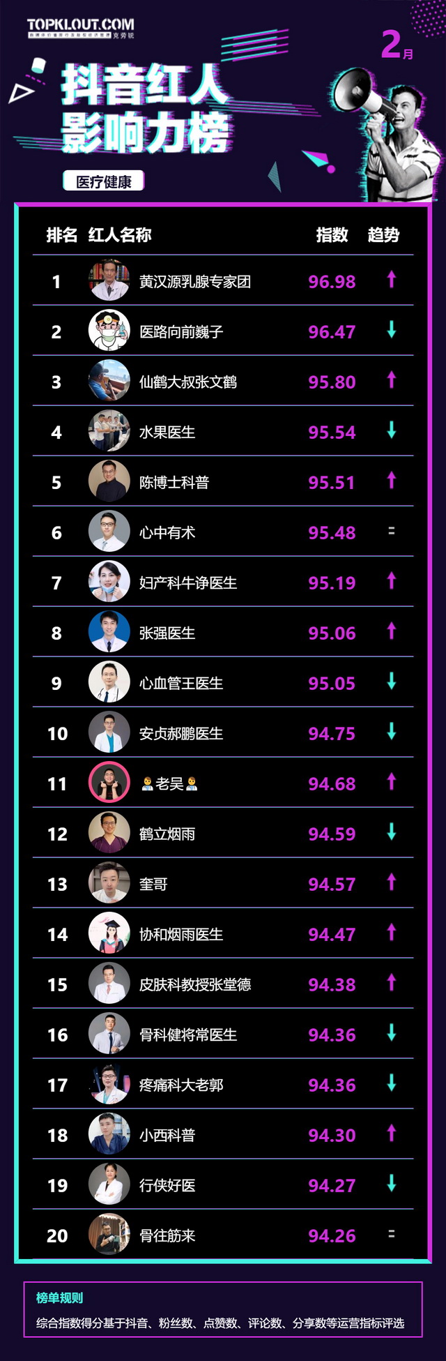 2月《抖音红人影响力榜》终于来啦!