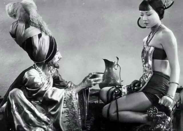 19岁时,黄柳霜在《巴格达窃贼》中出演一名蒙古女奴,是片中的二号反派。该片耗资113万美元,制作规格在1920年代排在前列,黄柳霜的扮相则颇具象征意味:梳两个环形髻,穿紧身服装,除了胸部与臀部近乎赤裸,像枚带着异域邪恶色彩的情欲符号。