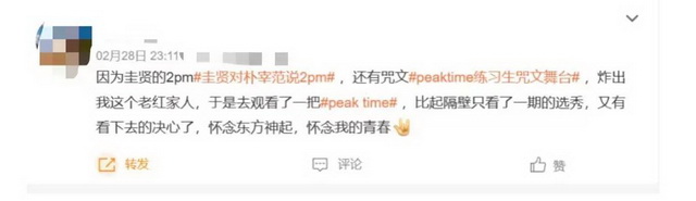 2月15日,韩国JTBC电视台上新了一档韩综《peak time》。这是韩国首档不是以个人战,而是以团体战展开的偶像选秀。在报名的七十几支团队中,节目组选择了23组已出道偶像,并将分为了三组:新人组(刚出道不久)、推进器组(一直在活动,但想要获得更高人气)、暂停活动组(由于服兵役、解散、疫情等原因已经久未活动)。