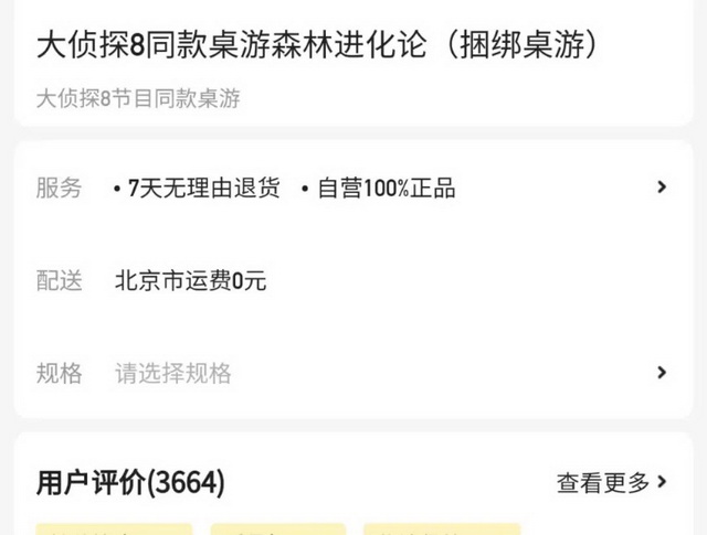 作为《大侦探》“超前聚会”量身定做的原创游戏,桌游《森林进化论》不仅尝试了综艺游戏的创新,丰富了节目内容;更重要的是,节目组将该游戏做成实体桌游进行发售,以节目IP为中心,实现了综艺内容本身对实体游戏的“带货”。