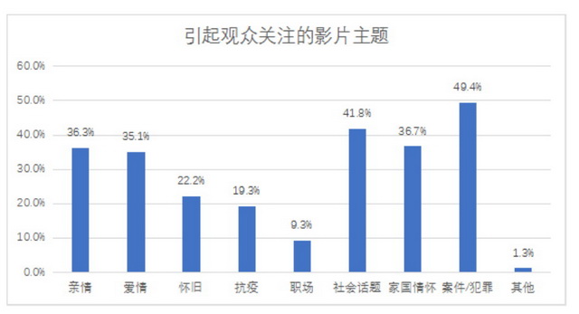 另据《2021中国电影观众调查报告》显示,2021年院线新上映的481部国产影片中犯罪类型影片数量仅占3%,但观众最感兴趣的是恰恰就是“案件/犯罪题材”的影片,占比49.4%。这充分说明这一类型仍有很大的市场空间待挖掘。