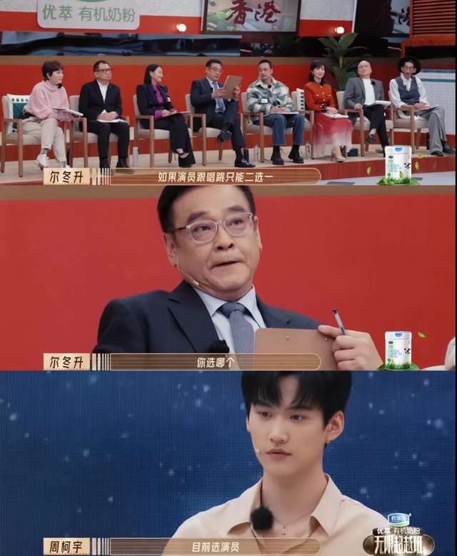 周柯宇的回答是“目前选演员”。他提到最开始做唱跳的时候,梦想是进入一个团体、开一场演唱会,当下成团目标已经实现,演唱会可能过几个月就能开,那这一阶段的梦想结束以后,就可以开启下一个阶段的梦想了。