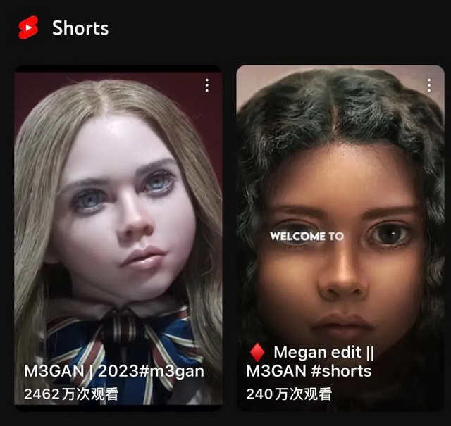 上周《梅根》在内地上映,接连打破了过去三年恐怖片的预售、首日、单日票房纪录。早在今年1月,该片未映先火,真人大小的梅根频繁出现在北美的综艺或脱口秀舞台上,尬舞视频更是在社交平台收获无数粉丝,YouTube上相关视频观看次数超2000万,Tiktok上视频播放次数超过10亿次。